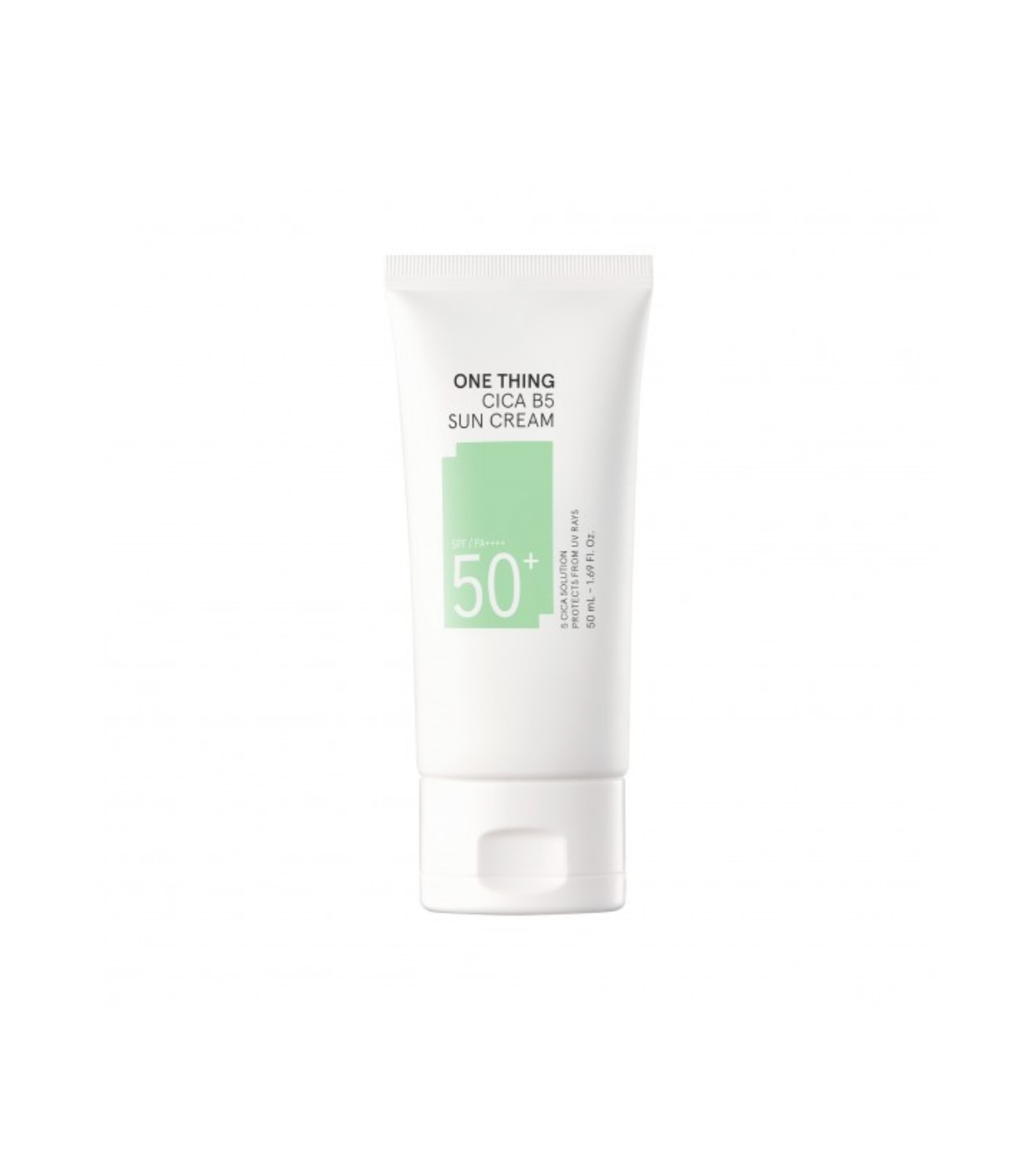 Cica B5 Sun Cream de One Thing es un protector solar facial de alta protección UVA y UVB, formulado para proteger la piel del daño solar diario mientras la mantiene hidratada, calmada y confortable.