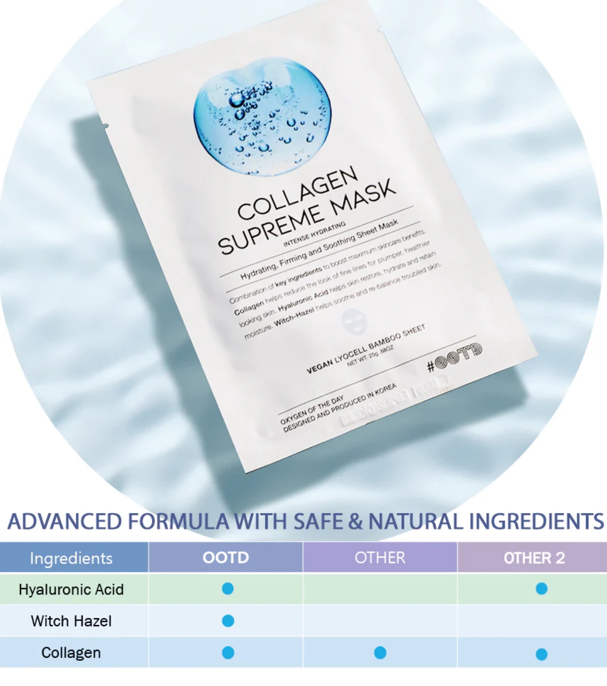 Revitaliza tu piel con nuestra mascarilla facial regeneradora Collagen Supreme Mask de OOTD Beauty, formulada con una poderosa combinación de colágeno, ácido hialurónico y hamamelis para proporcionar un cuidado completo.