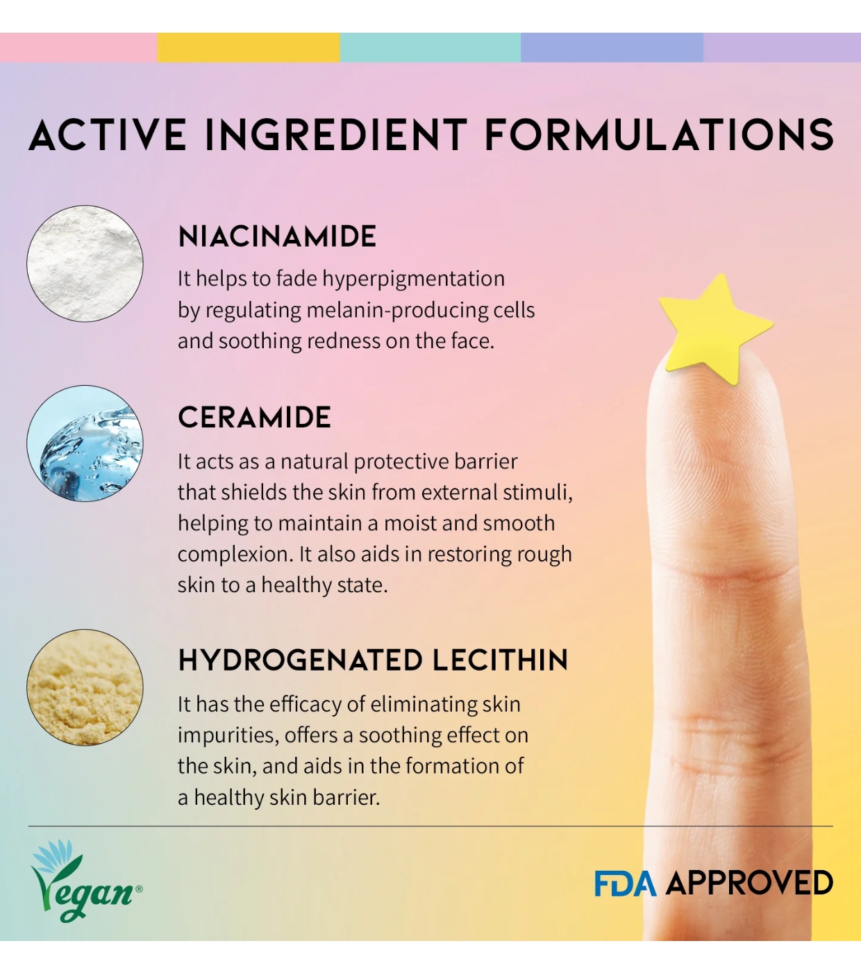 - Hidrocoloide de grado médico: Absorbe impurezas y acelera la recuperación de la piel.