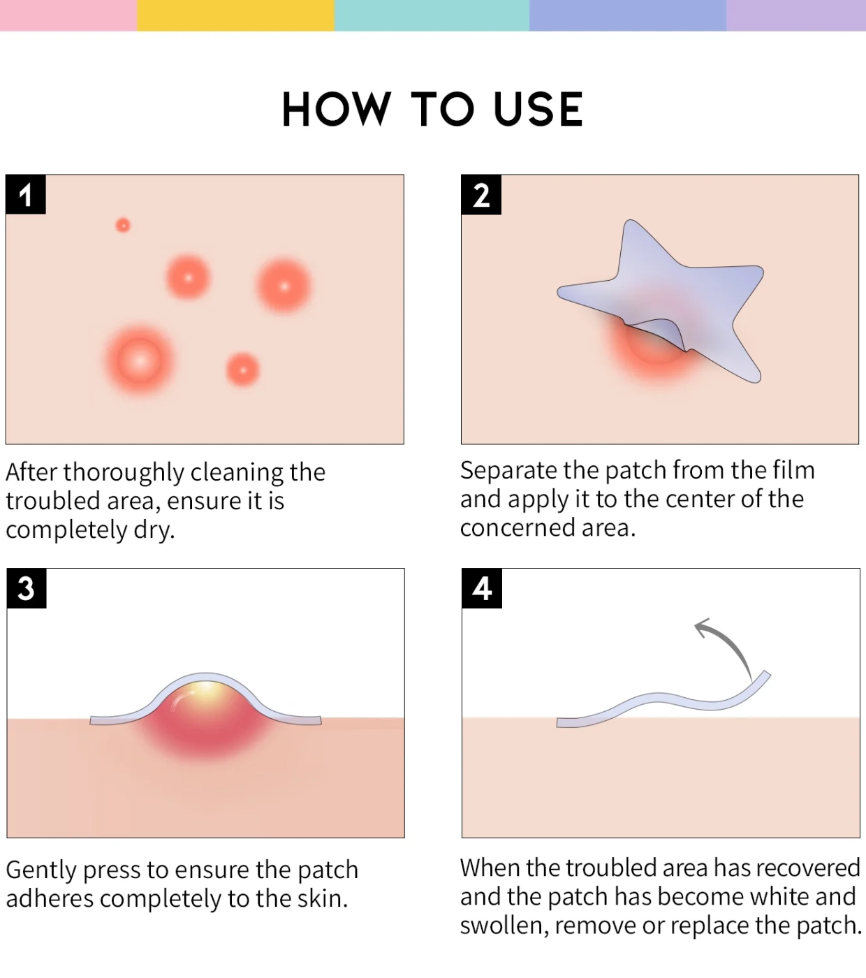 Sobre la piel limpia y seca, cubra la imperfección con el parche hidrocoloide.