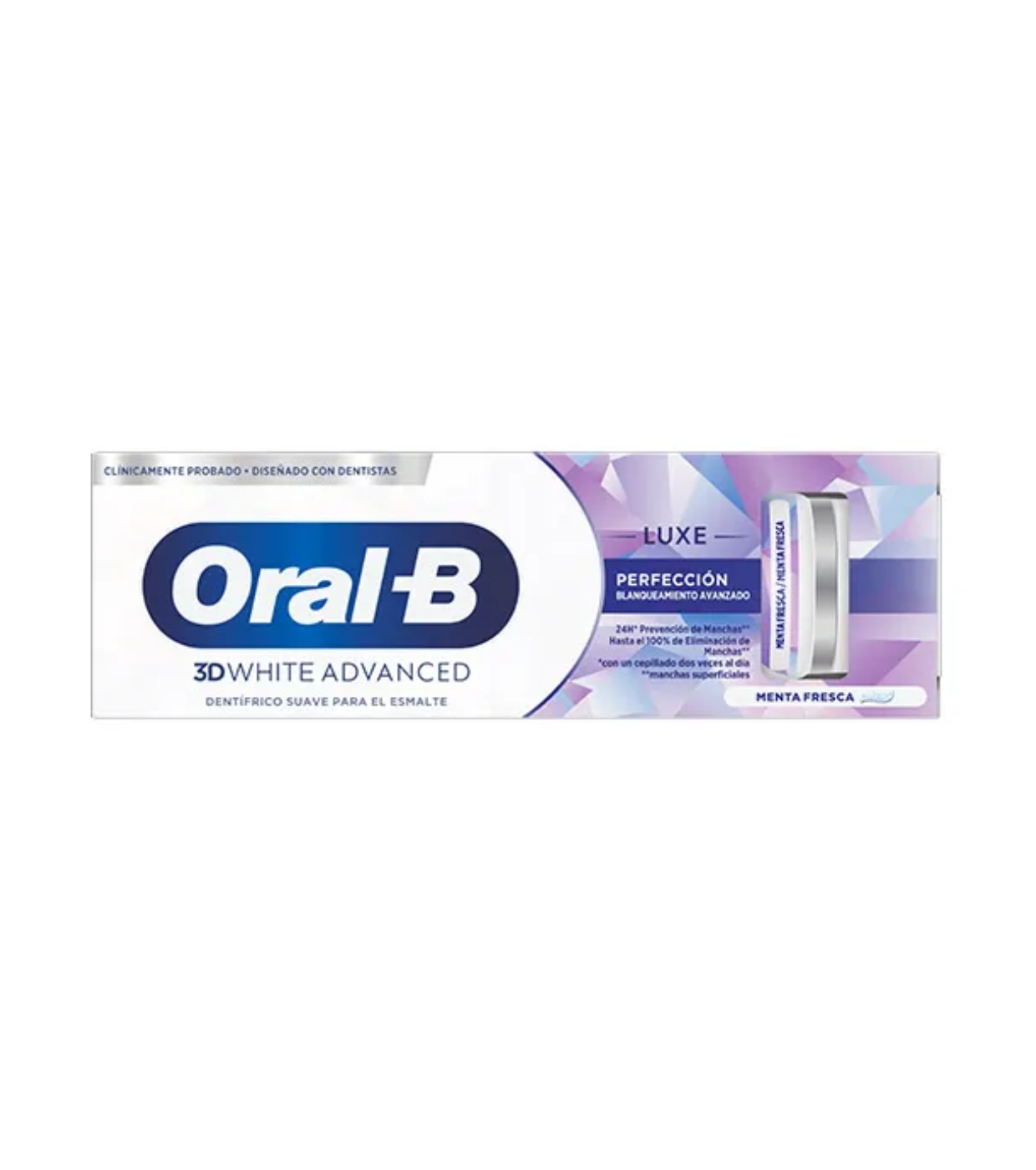 Disfruta de un blanqueamiento avanzado y un sabor a menta intensa que aporta un frescor duradero tras cada cepillado con la pasta de dientes 3D White Advanced Luxe de Oral B.