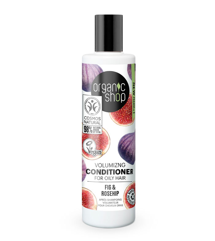 El extracto de higo y el aceite de escaramujo orgánico tienen propiedades nutritivas, que ayudan a equilibrar el cabello, lo acondicionan en toda su longitud y lo dejan con volumen.
