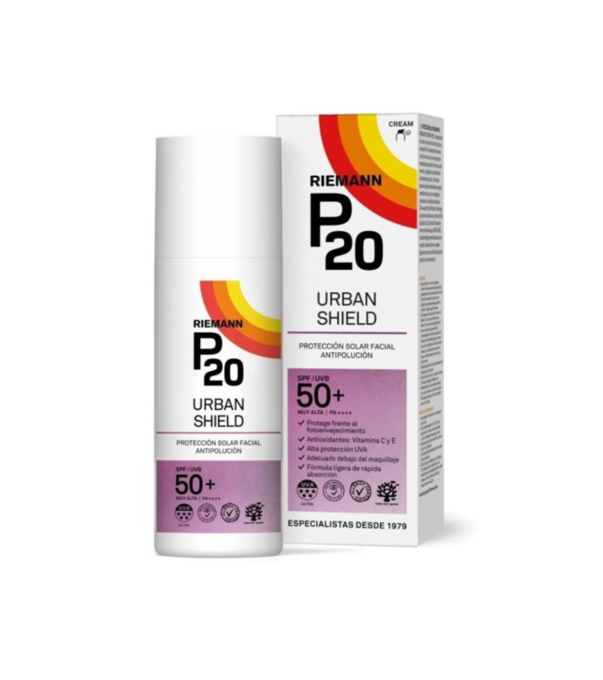 Protege tu piel a diario con protector solar Urban Shield SPF50+ de P20, el protector solar facial diseñado especialmente para combatir los efectos de los agresores urbanos como la contaminación, el polvo, los metales pesados y el humo.