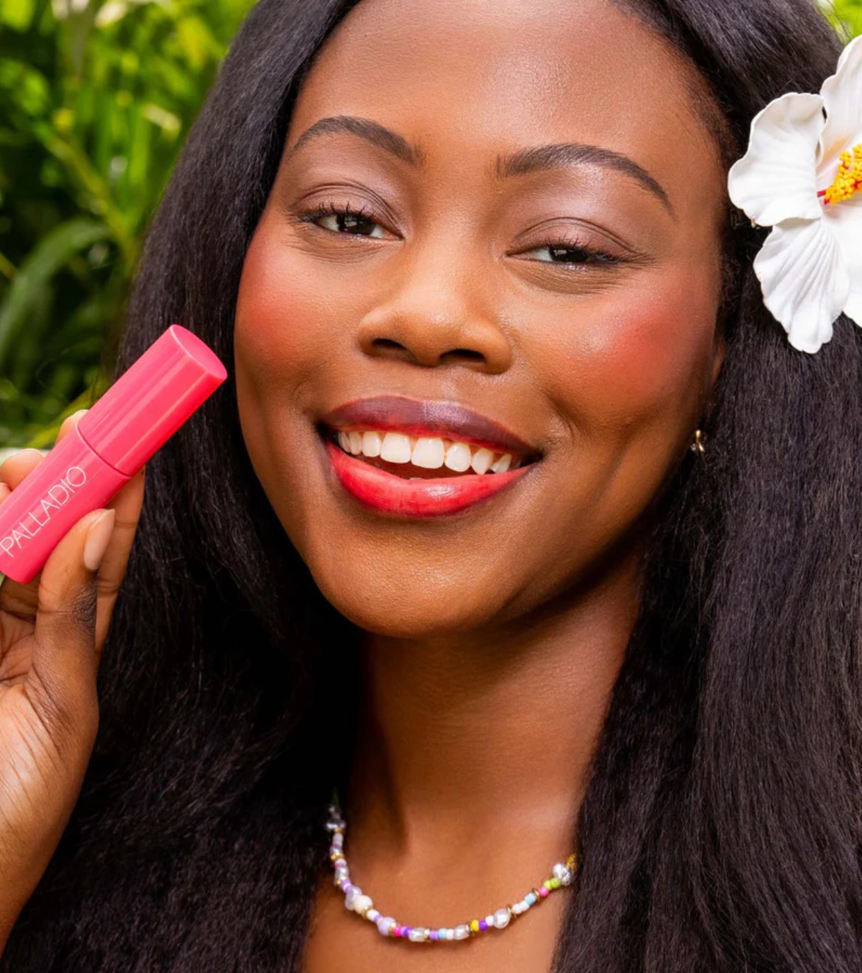 Consiente tu piel con el Jelly Tint de Palladio, un tinte en gel ligero a base de agua que aporta un color translúcido y radiante a labios y mejillas.