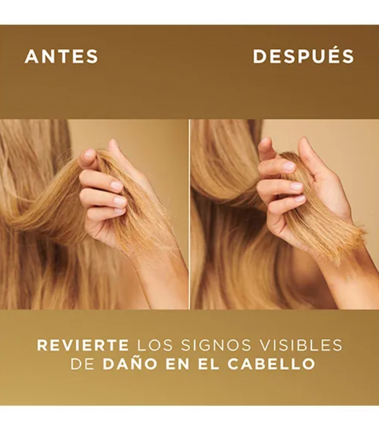 - Repara y protege el cabello a nivel molecular, restaurando su salud y reparando los daños causados por el peinado, la decoloración y el uso de secadores.