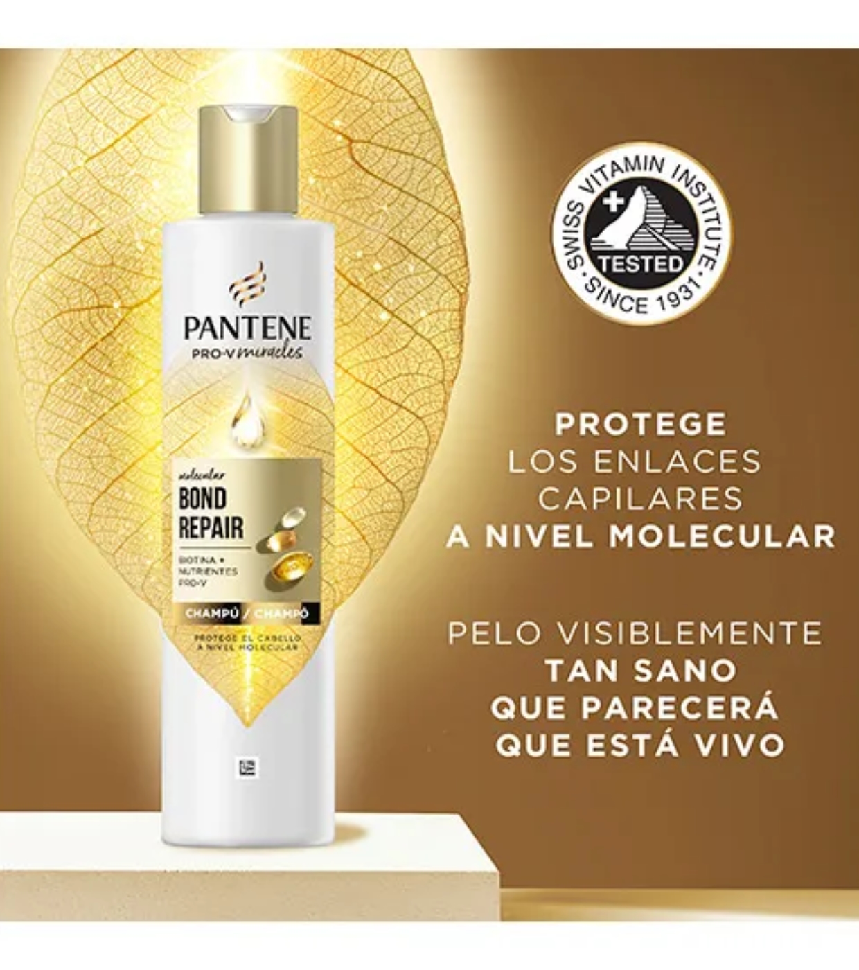 Descubre el champú Pantene Bond Repair, diseñado para reparar y proteger los enlaces capilares a nivel molecular.