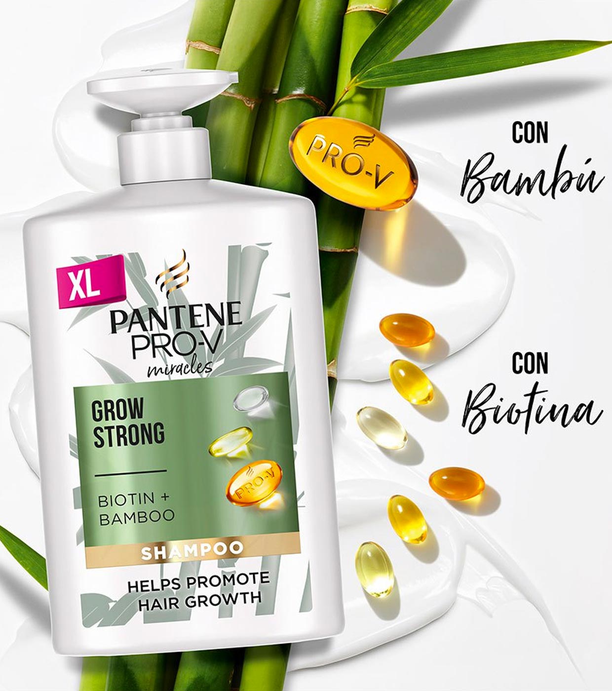 El champú Pro-V Miracles Crecimiento con Fuerza de Pantene combina el poder de la ciencia Pro-V con la biotina y el bambú.