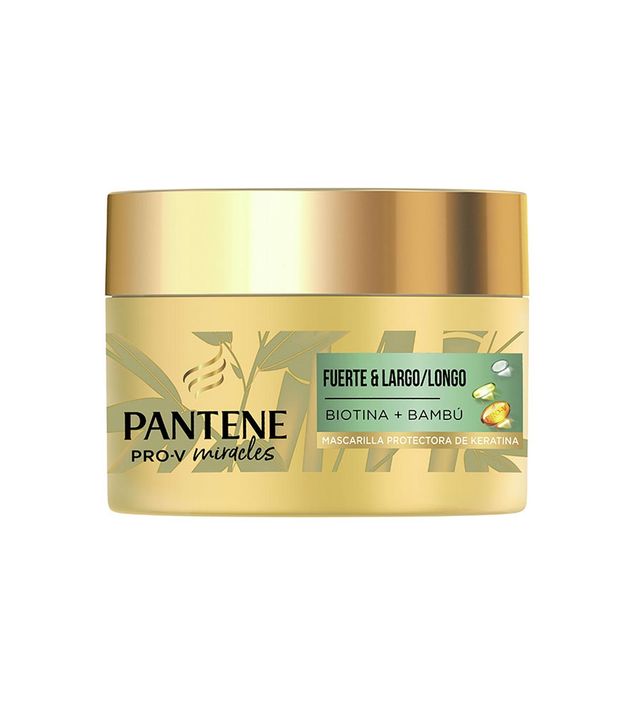 La mascarilla reconstructora de keratina Fuerte & Largo de Pantene combina el poder de la ciencia Pro-V con la biotina y el bambú.