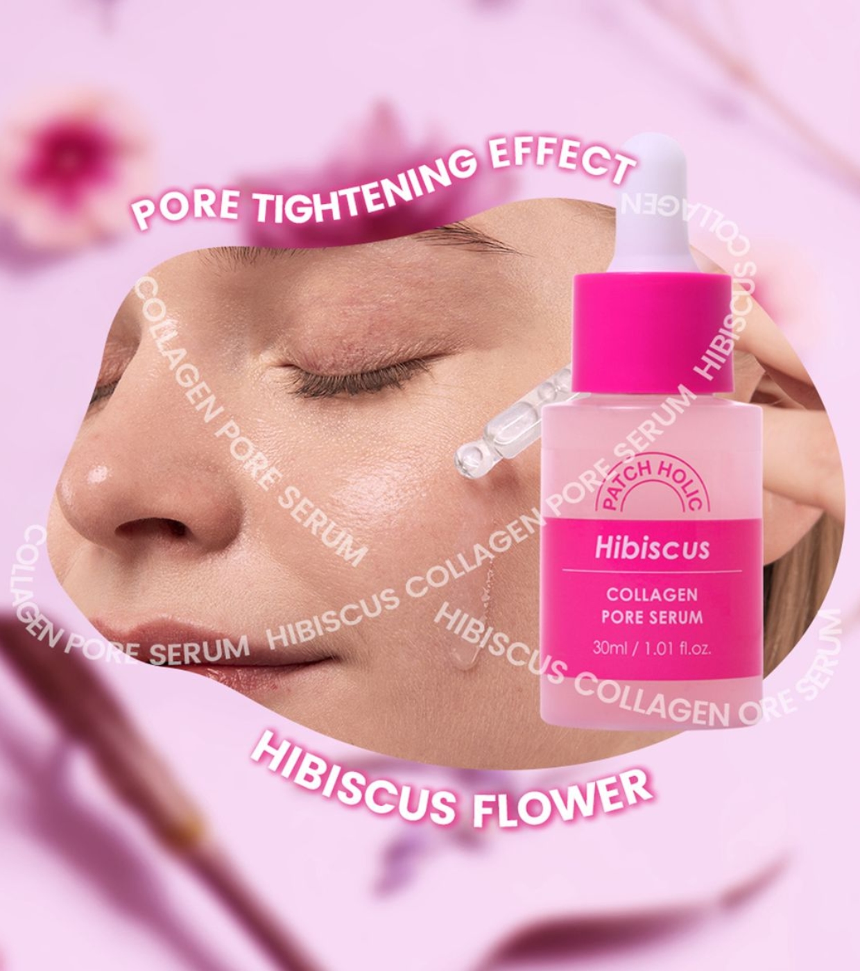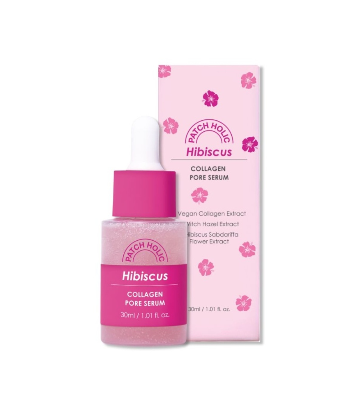 Este sérum antimanchas Hibiscus Collagen Pure Serum de Patch Holic especializado está diseñado para abordar de manera efectiva los problemas de poros dilatados, manchas y arrugas.