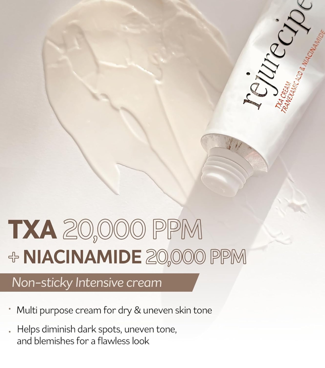 Gracias a su textura ligera y de rápida absorción, Rejurecipe TXA Cream se integra fácilmente en cualquier rutina de cuidado facial, funcionando como último paso tanto de día como de noche.