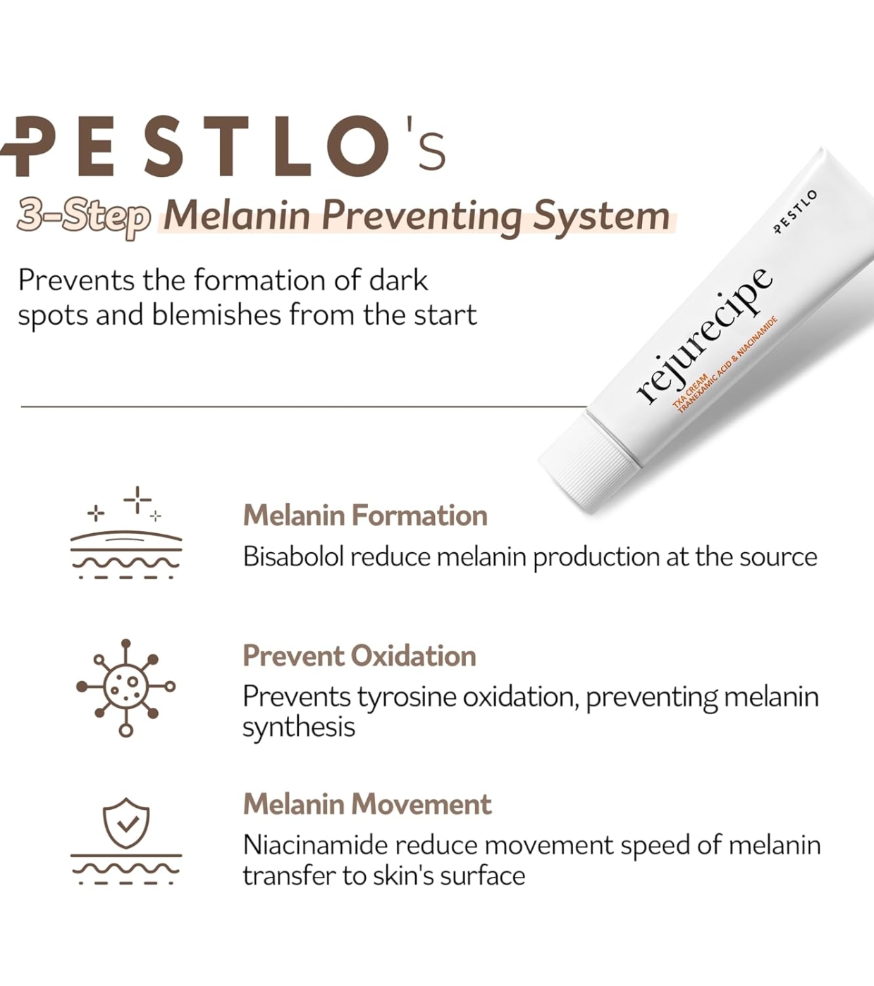 La Rejurecipe TXA Cream de PESTLO es una crema facial iluminadora e hidratante formulada para mejorar la uniformidad del tono, aportar luminosidad y mantener la piel equilibrada y confortable, incluso en pieles sensibles.