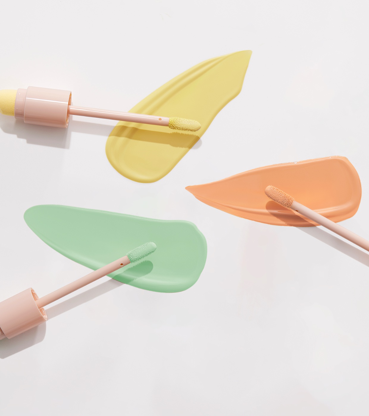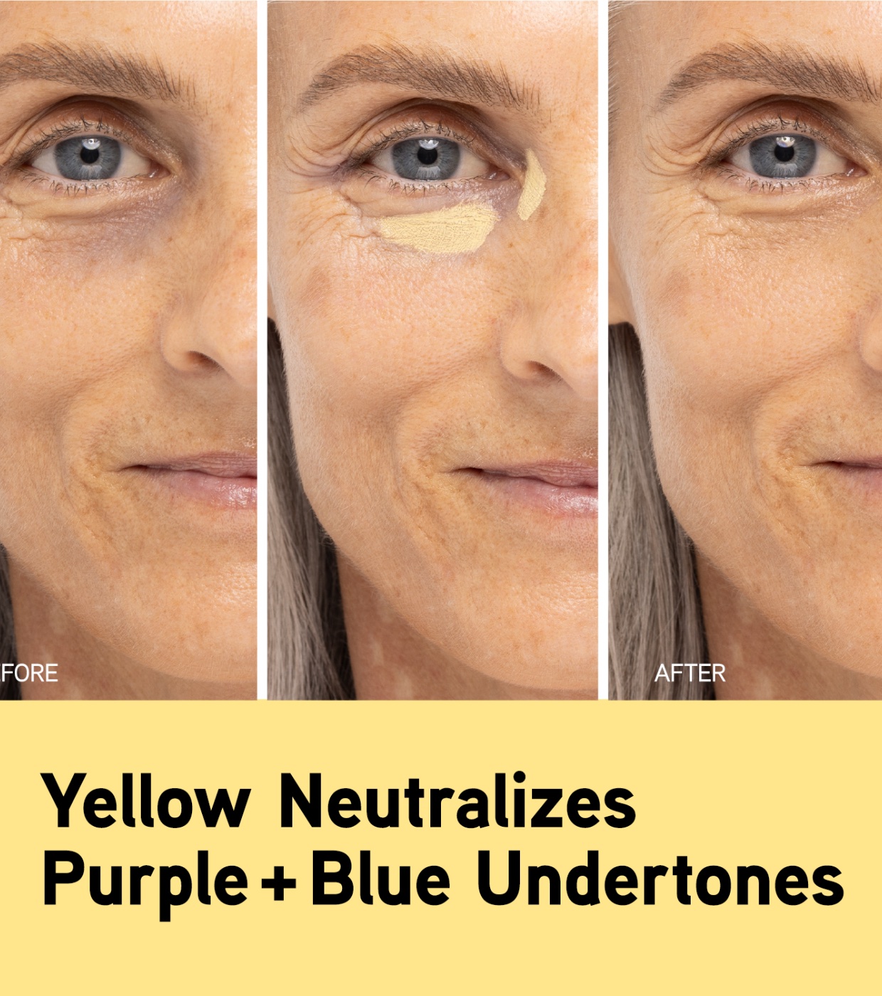 Este corrector amarillo neutraliza la decoloración púrpura oscura o azul, especialmente en la zona de debajo de los ojos.