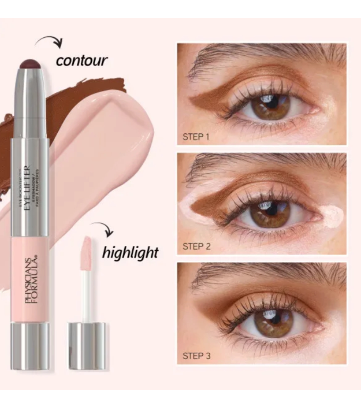 Con tonos universalmente favorecedores, este Duo de sombra de ojos Eye Lifter de Physicians Formula combina una textura de crema sedosa para dar profundidad y definición, mientras que la sombra líquida ilumina y aporta brillo a la mirada.