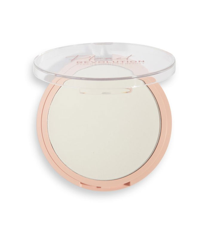 Los polvos compactos universales de Planet Revolution tienen un packaging hecho de Fibreform™, un material compostable que se origina a partir de desechos vegetales, y la tapa está hecha de plástico reciclado.