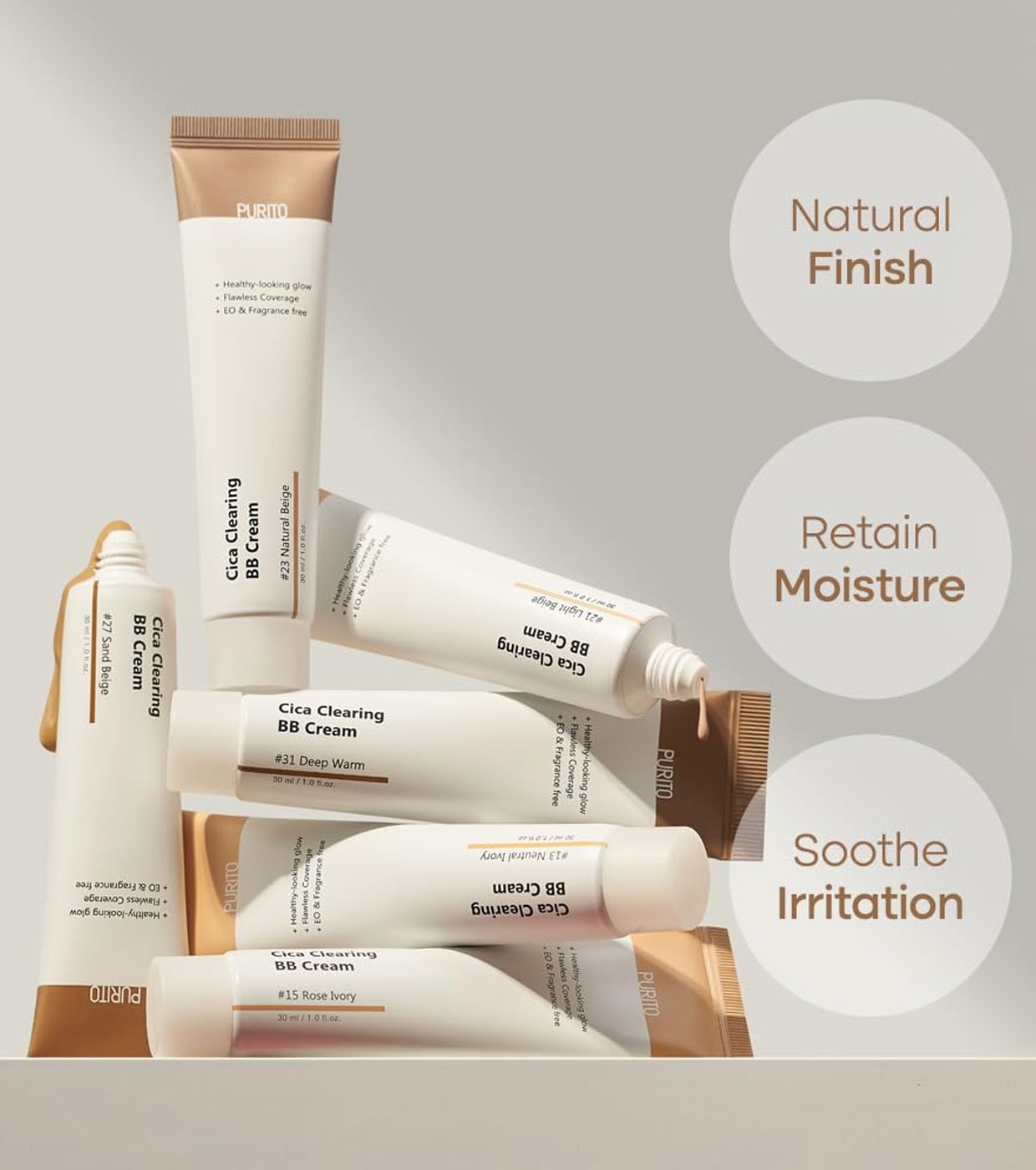 Disfruta de una piel radiante y cuidada con Cica Clearing BB Cream de PURITO, la clave para sellar tus pasos de cuidado de la piel con un velo suave y uniforme.