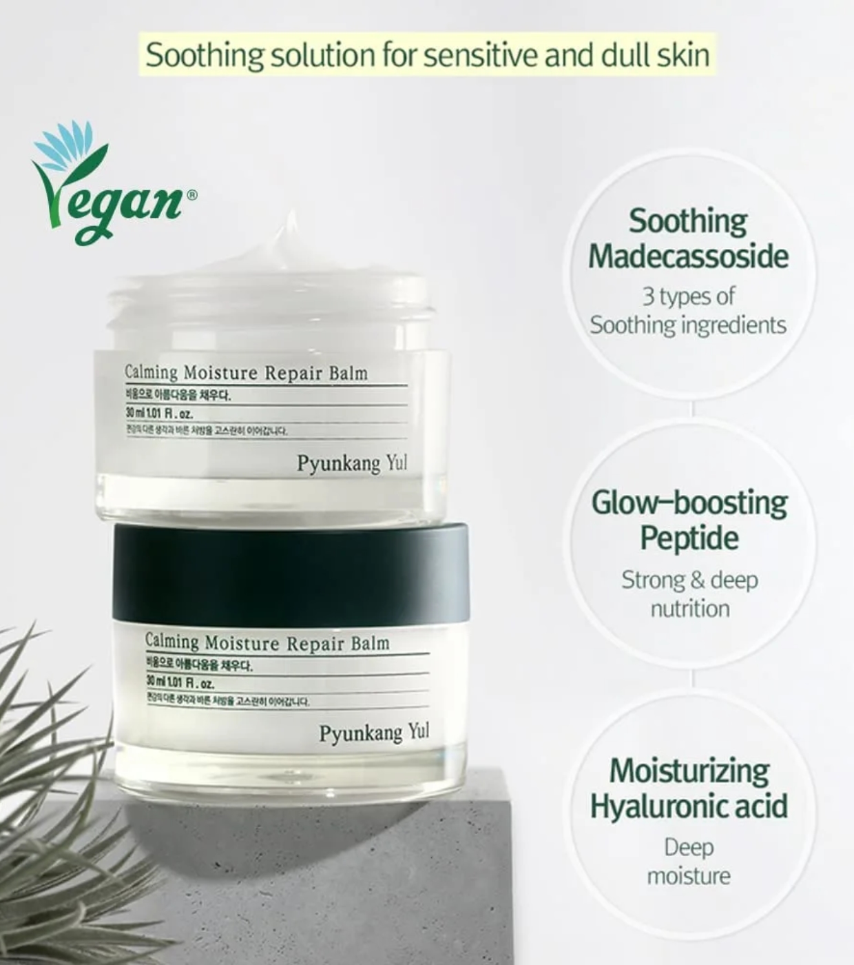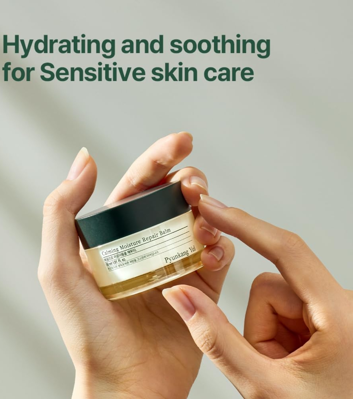 El Pyunkang Yul Calming Moisture Repair Balm es un bálsamo facial calmante, regenerador e hidratante, especialmente formulado para pieles sensibles, con acné, rojeces o irritaciones.