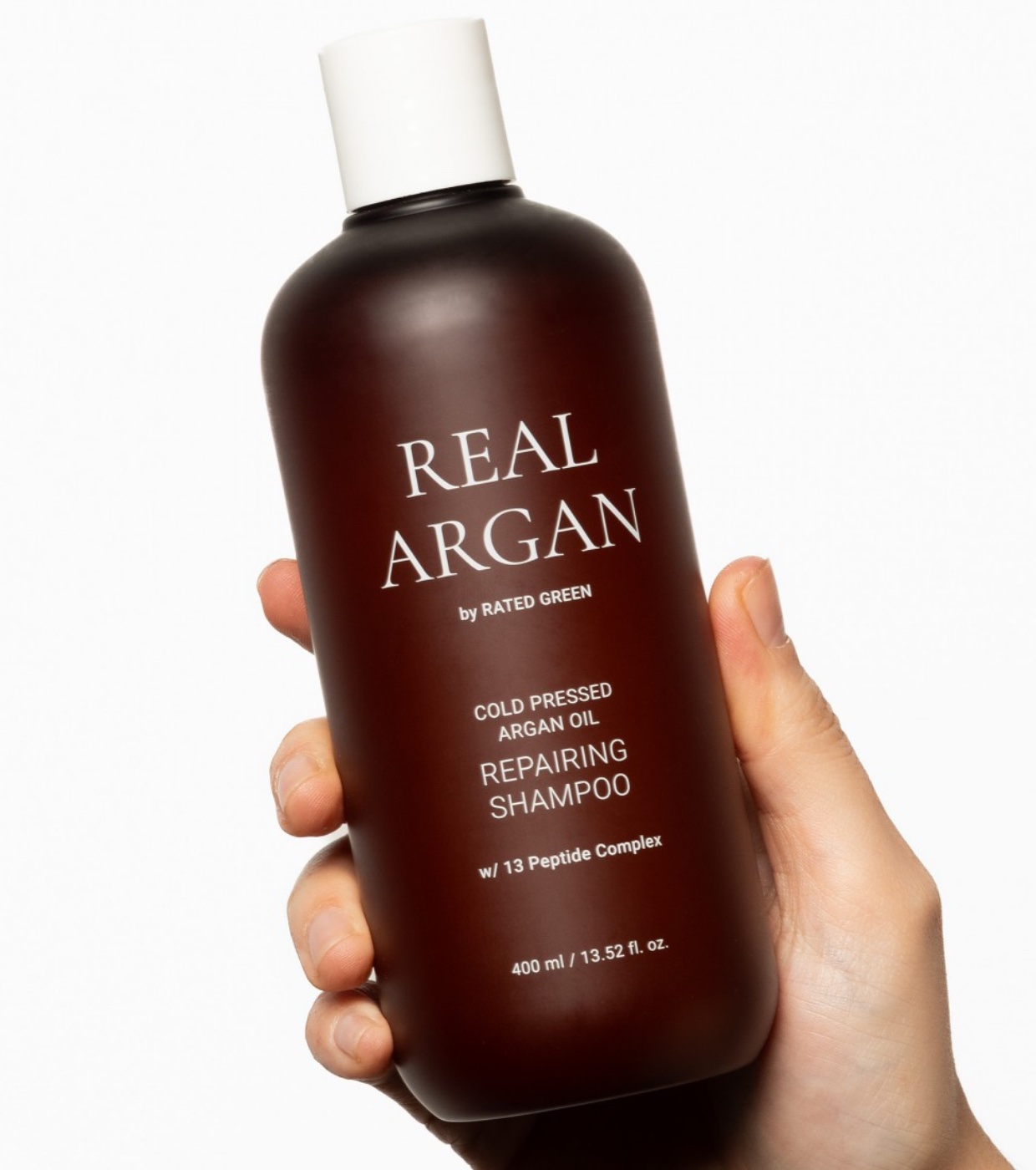 El champú reparador Real Argan de Rated Green está formulado sin siliconas limpia suave y eficazmente el cabello y cuero cabelludo.