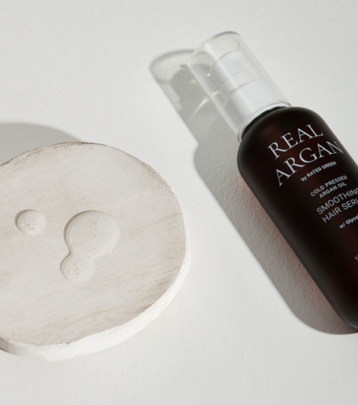 El Real Argan Smoothing Hair Serum de Rated Green es un sérum capilar sin aclarado diseñado para hidratar, reparar y suavizar el cabello seco o dañado, sin dejar residuos ni apelmazar.