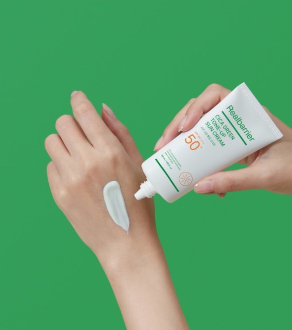 Real Barrier Cica Green Tone-Up es un protector solar mineral con color verde para piel sensible y con rojeces.