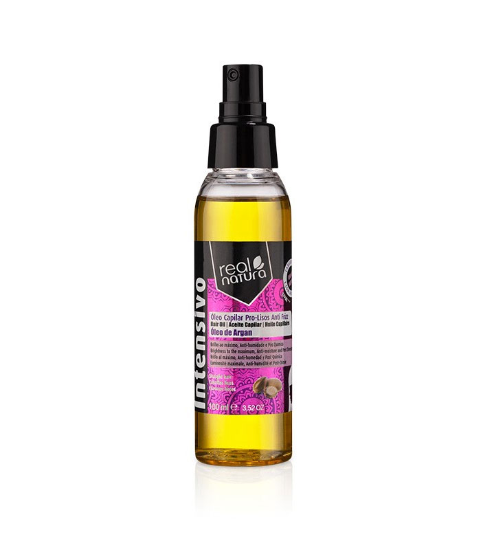 Aceite anti-encrespamiento para cabello liso con argán de Real Natura con protección solar.