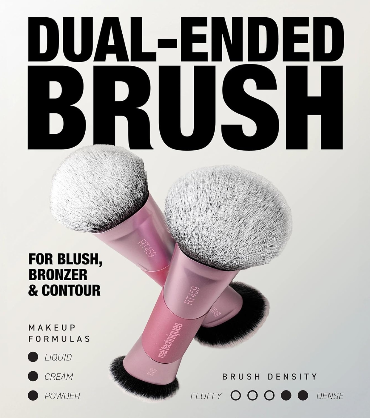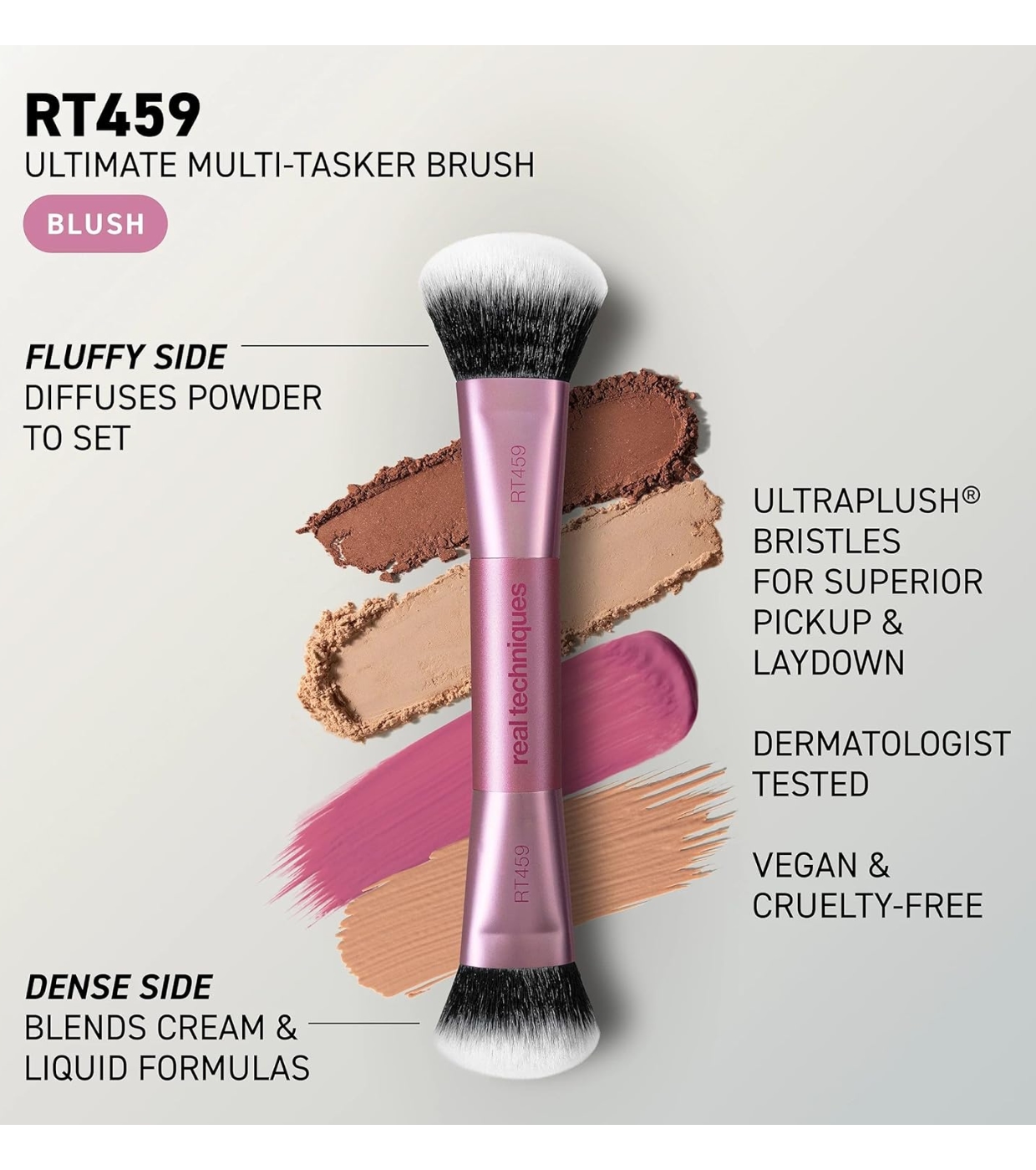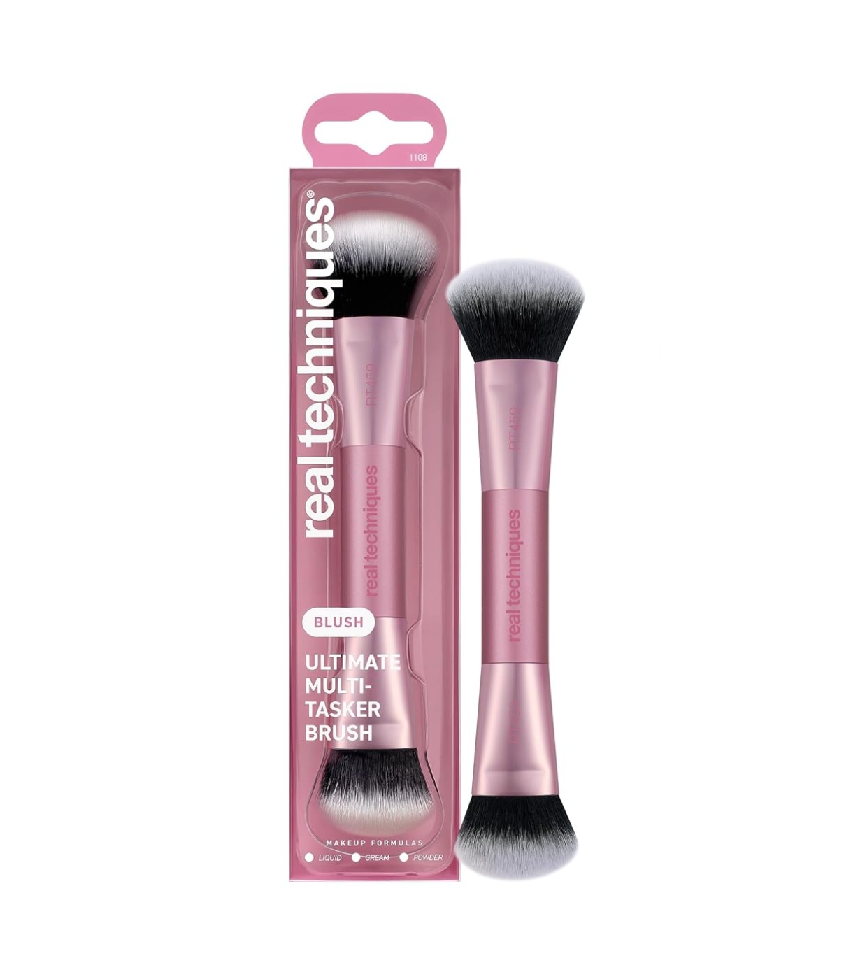 La brocha Ultimate Multi-Tasker Brush de Real Techniques es una herramienta versátil de doble extremo diseñada para aplicar, difuminar y sellar el maquillaje con facilidad.