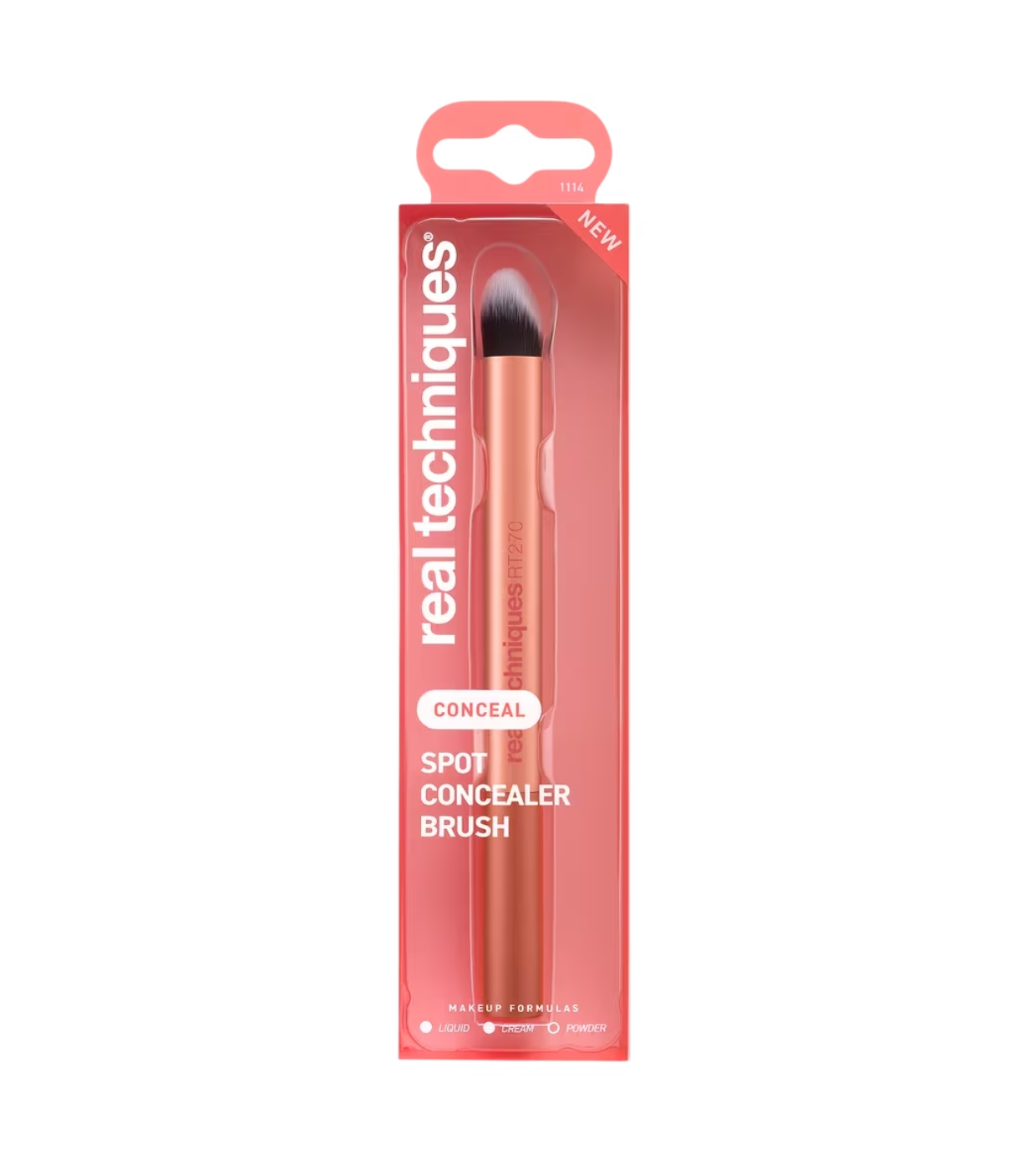 La brocha Spot Concealer Brush de Real Techniques es la herramienta perfecta para una aplicación precisa del corrector, ideal para cubrir imperfecciones localizadas con un acabado uniforme y natural.