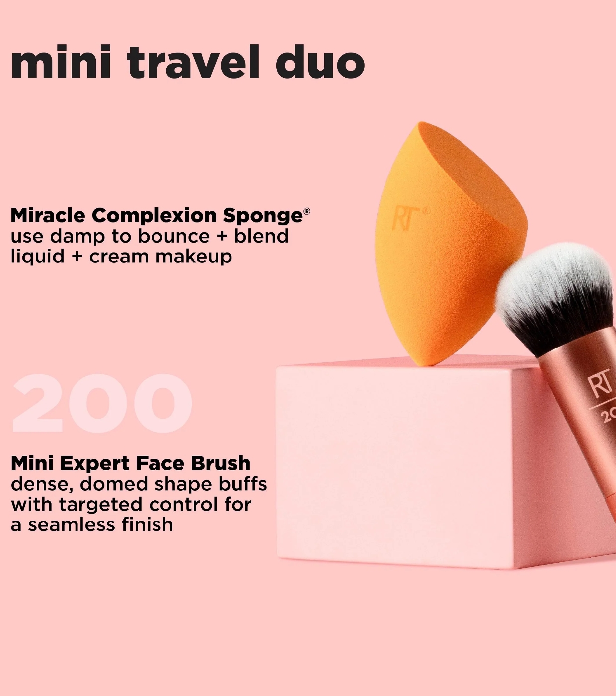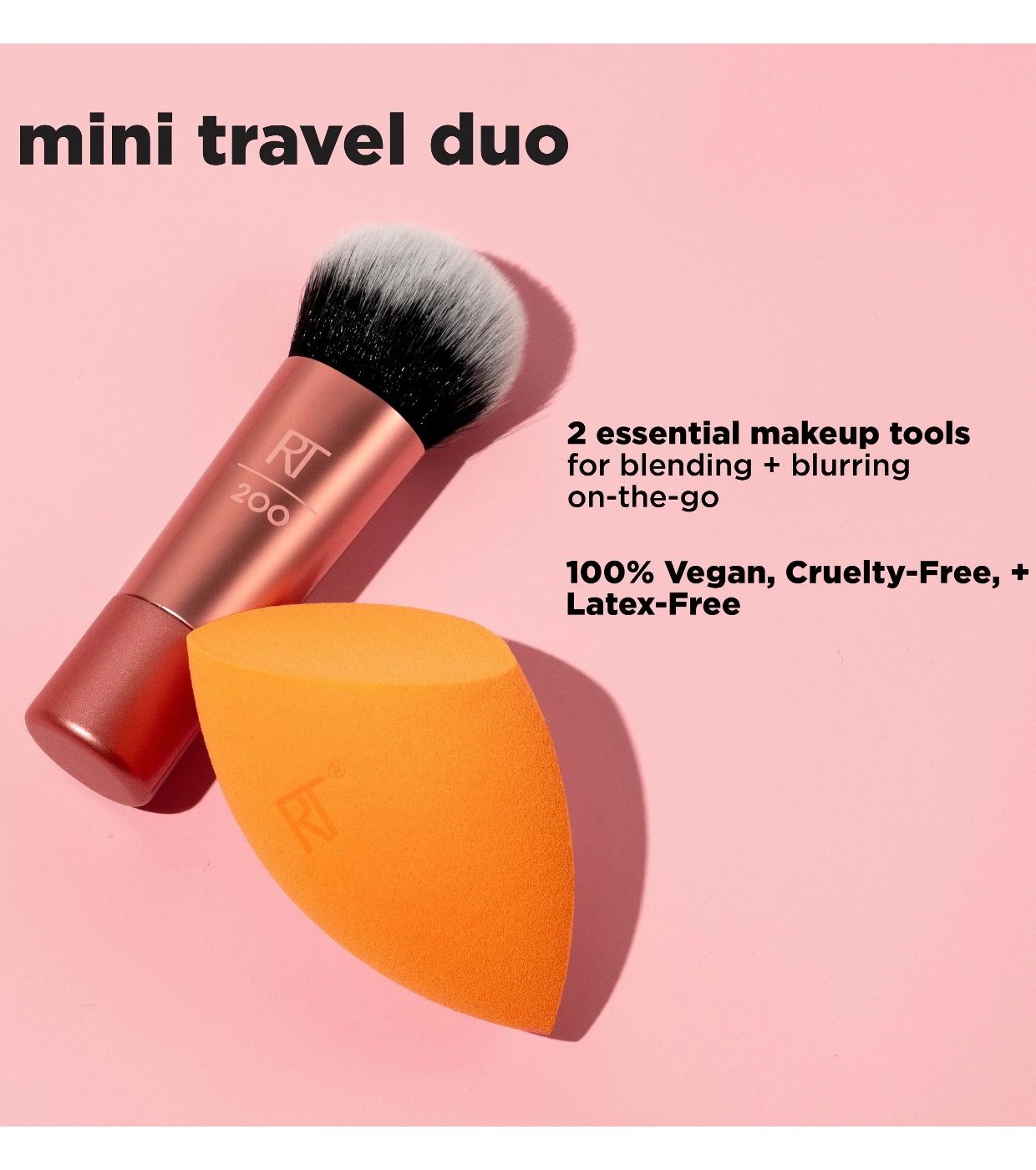 El Duo de brocha + esponja Mini Travel de Real Techniques es el set perfecto para llevar a todas partes, con dos herramientas imprescindibles que garantizan un maquillaje impecable, ya seas principiante o profesional.