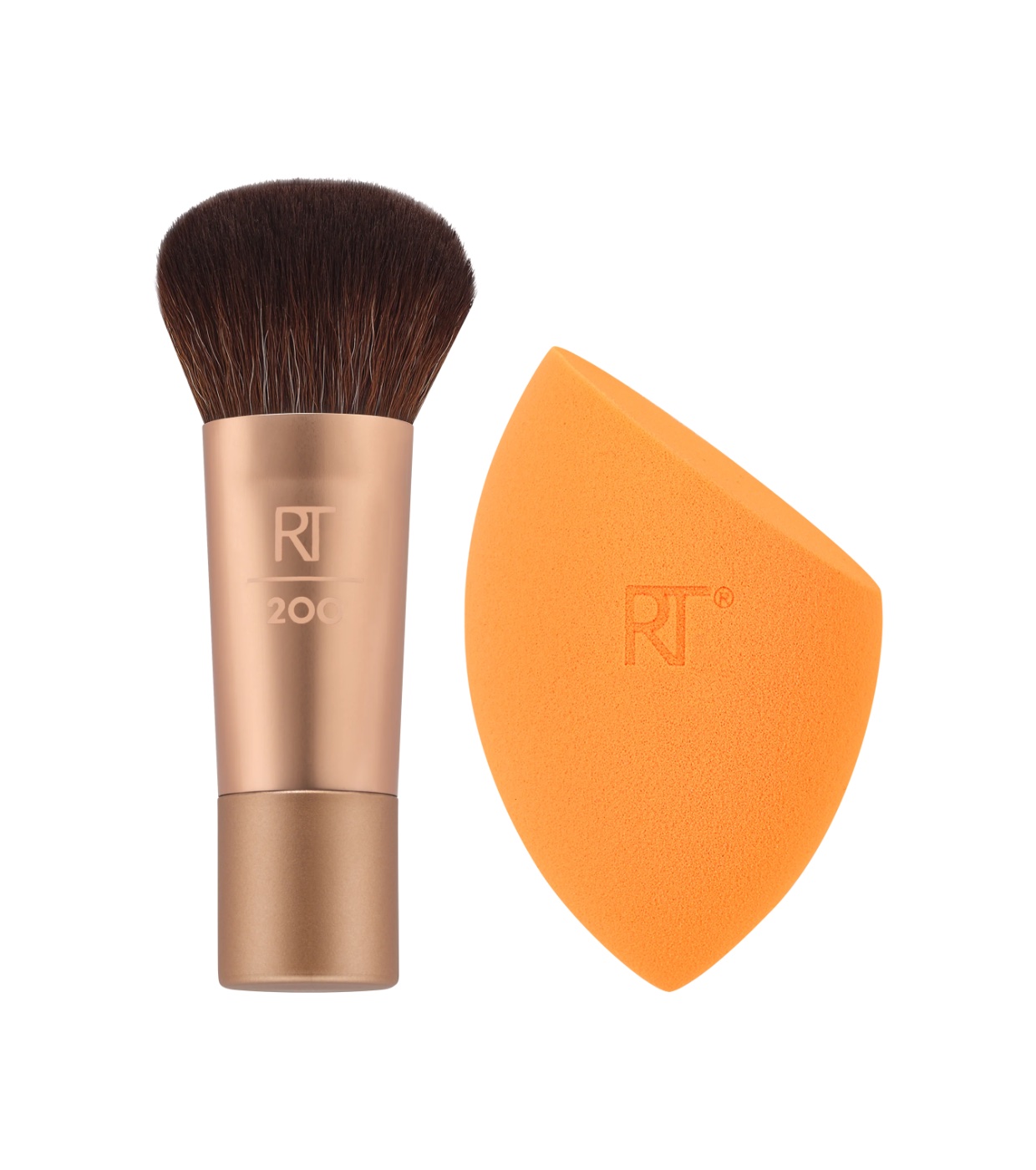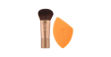 Este set incluye nuestra icónica esponja de maquillaje naranja y una mini brocha de base, diseñadas para trabajar con fórmulas líquidas y en crema.