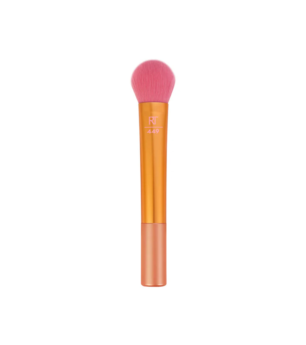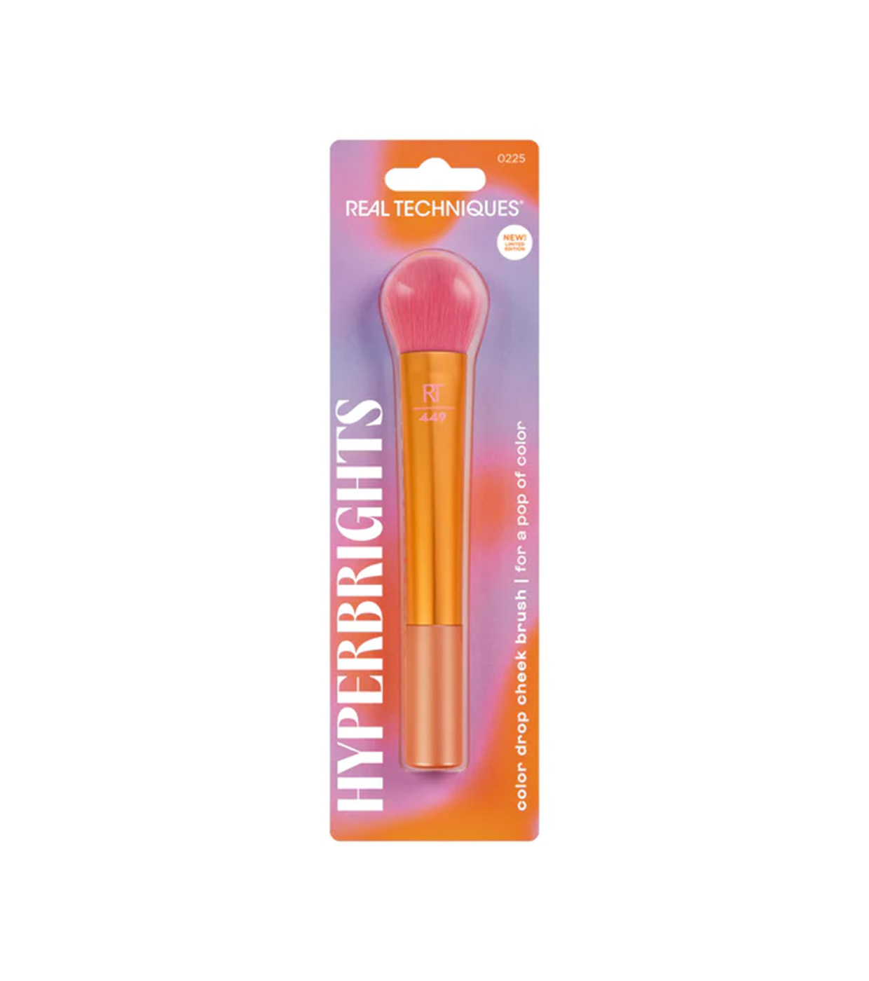 La brocha Hyperbrights Color Drop Cheek Brush de Real Techniques aplica el color con precisión en tus mejillas para lograr un brillo natural que dura toda la noche.