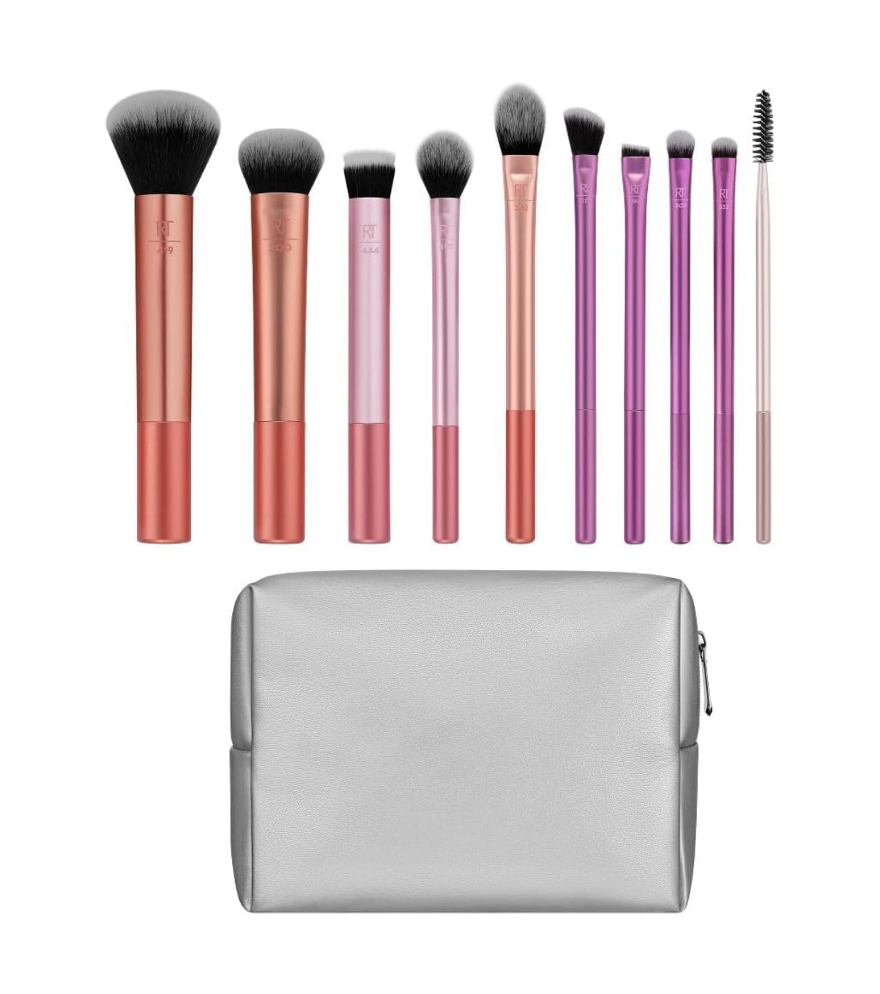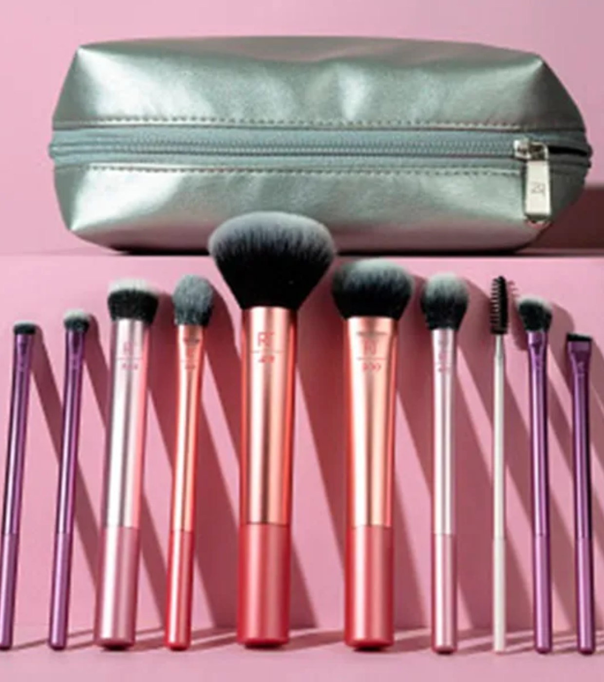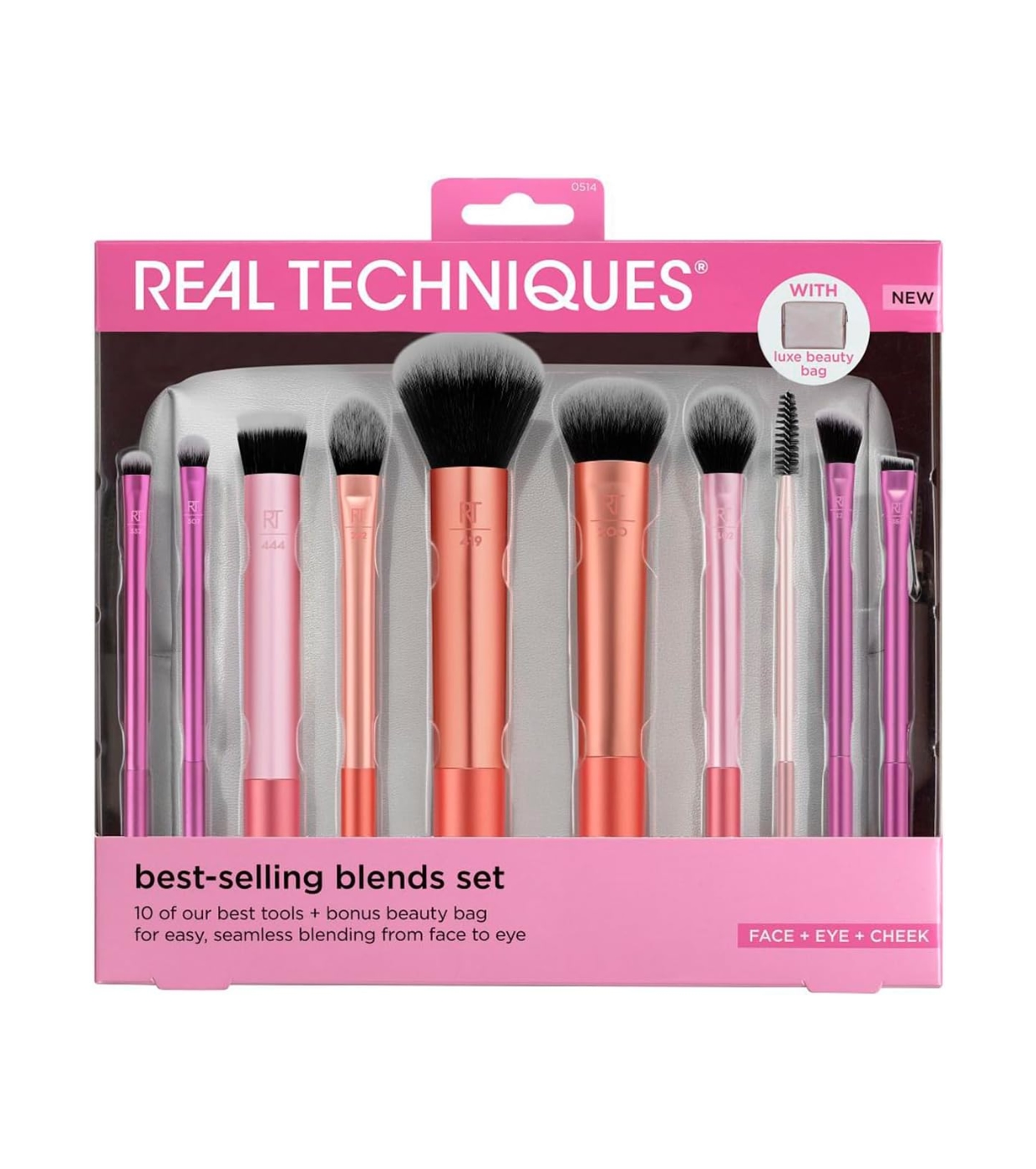 Este set de brochas + neceser Best-selling Blends Set de Real Tecnhiques completo de 10 accesorios incluye todo lo que necesitas para difuminar, fijar, esculpir y perfeccionar tu maquillaje con precisión profesional.