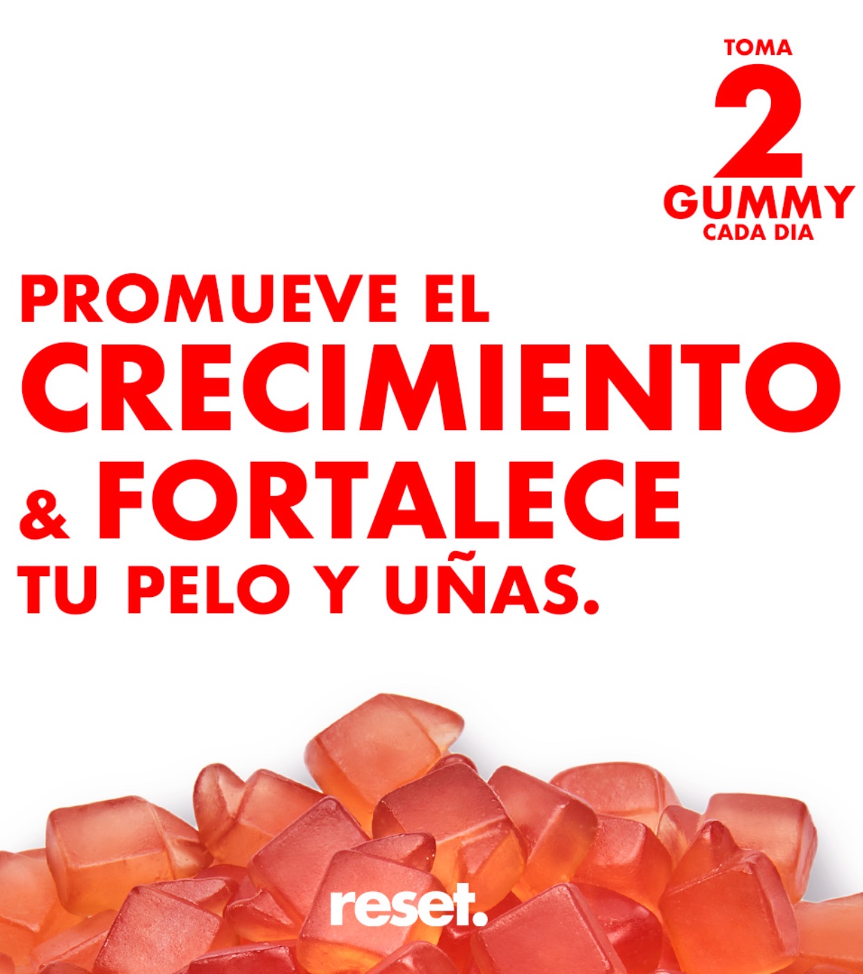 Fortalece tu pelo y tus uñas con las deliciosas vitaminas para cabello y uñas Hair & Nails Vitamin Gummies de Reset.