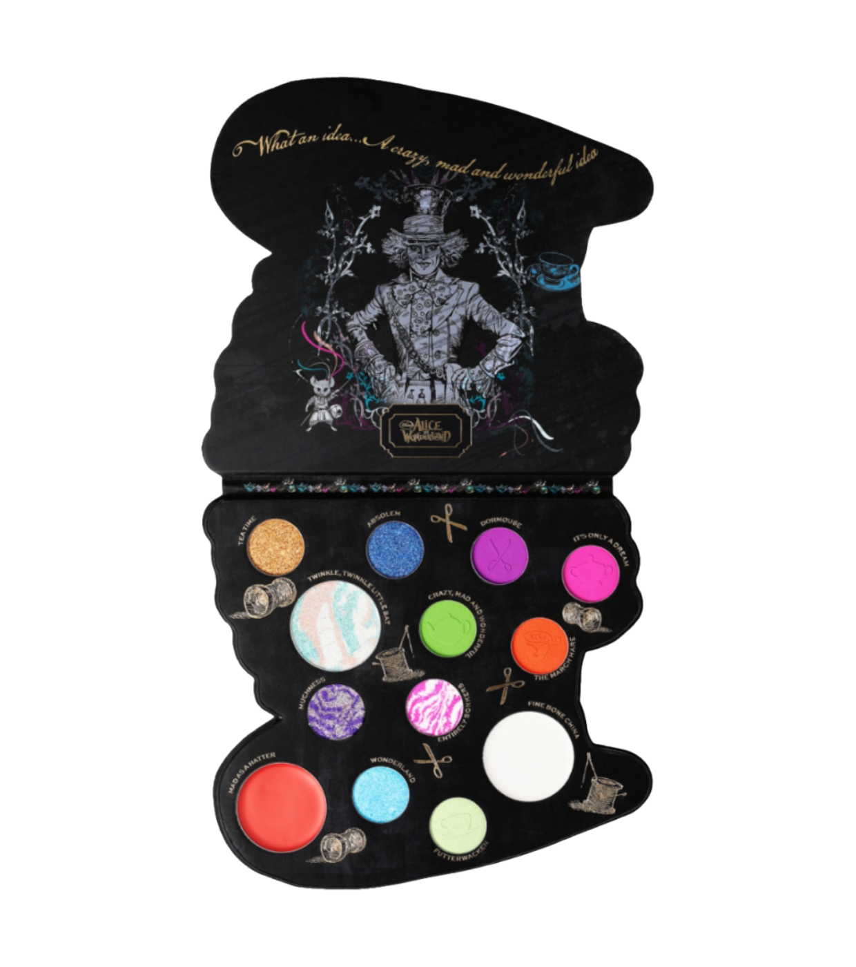 Diseñada con tonos metalizados y atrevidos, esta paleta refleja perfectamente la esencia de la "locura" del Sombrerero, el personaje favorito de todos.