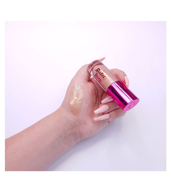 Brillo de labios Shimmer Bomb de Revolution en colaboración con la influencer Rachel Leary.