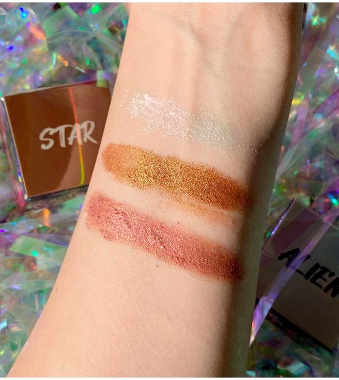 Estos pigmentos se deslizan sobre la piel con facilidad, aportando un brillo intenso, ¡de otra galaxia!