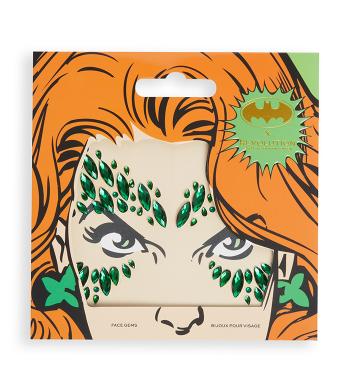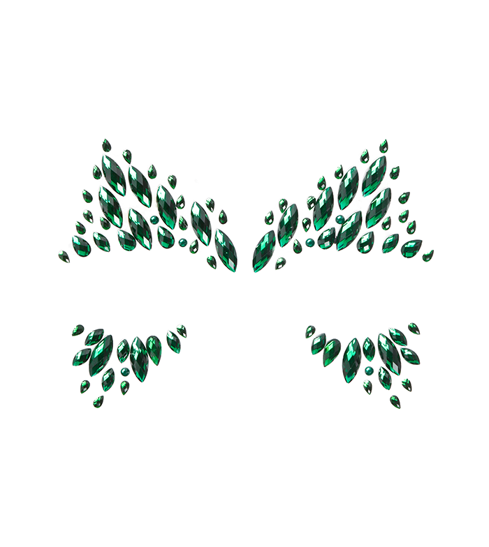 Transfórmate en una auténtica Poison Ivy con estas gemas para el rostro en color verde esmeralda.