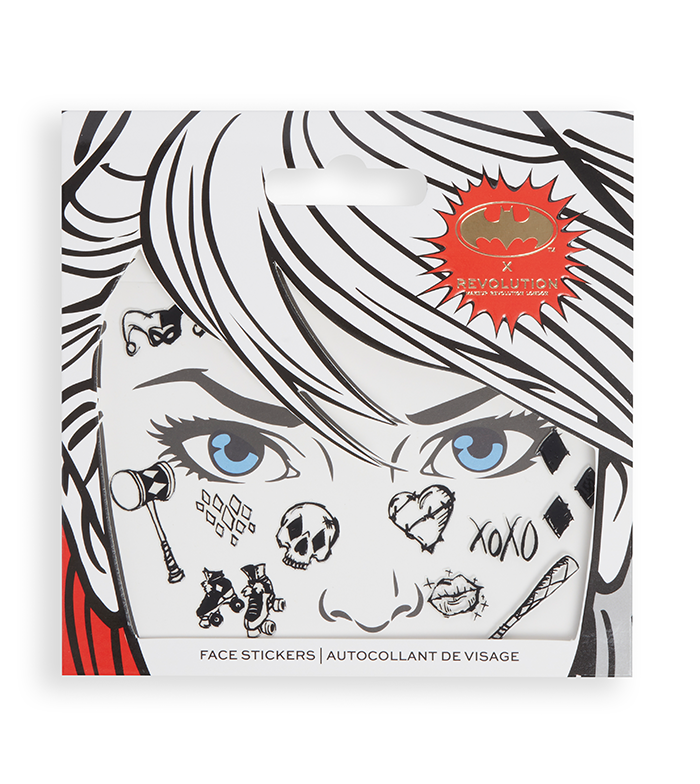 Completa tu look al más puro estilo Harley Quinn con estas pegatinas para el rostro de la colección DC junto a Makeup Revolution.