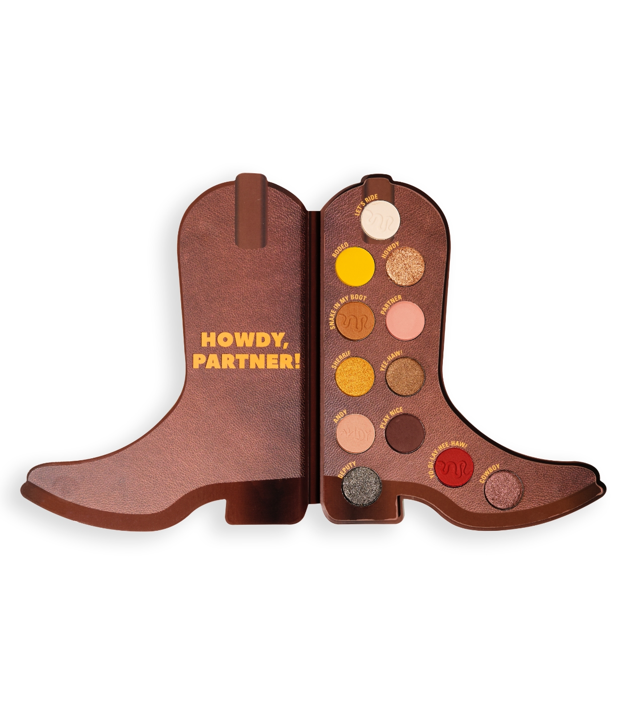 La paleta de sombras de ojos Woody Boot de Revolution presenta ocho tonos inspirados en tus personajes favoritos, combinando mates versátiles y brillos deslumbrantes en marrones terrosos y amarillos vibrantes.