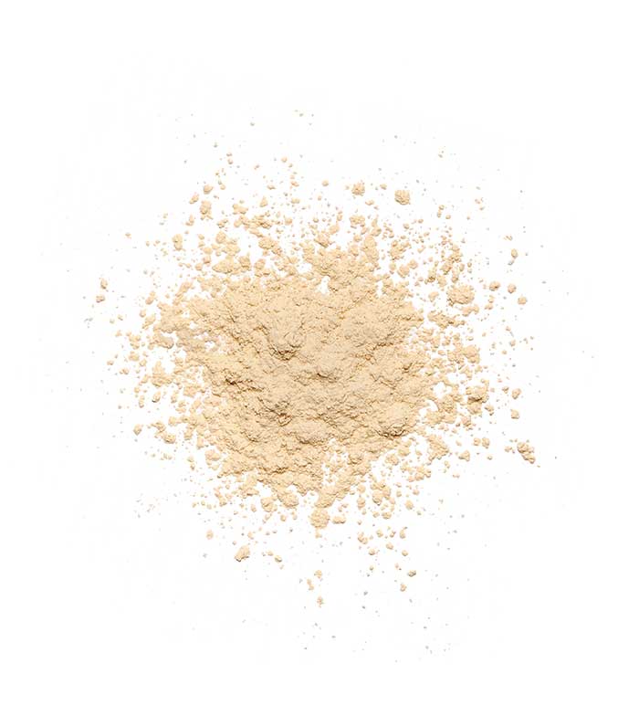 Un polvo suelto muy fino que puede aplicarse de una forma sencilla con una brocha para polvos.