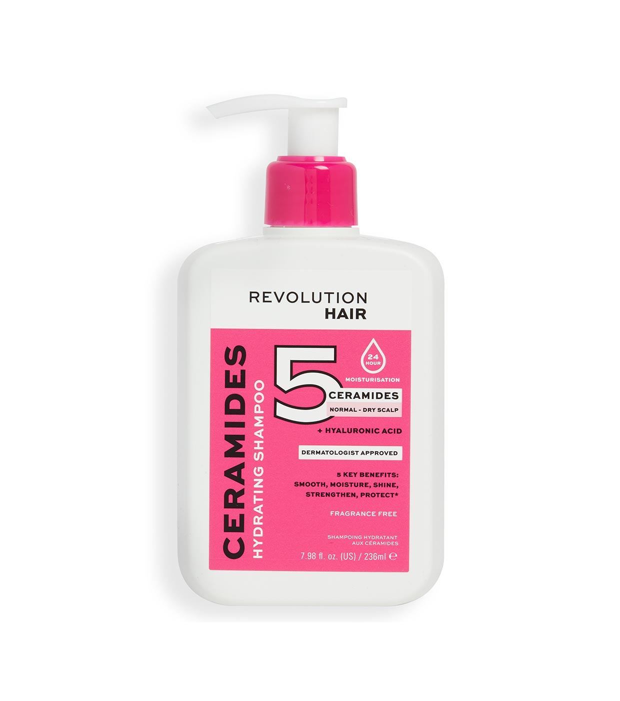 Formulado con 5 ceramidas y ácido hialurónico para garantizar un cuero cabelludo hidratado y sano, el producto también ayuda a fortalecer, suavizar y dar a su cabello el brillo saludable que se merece.