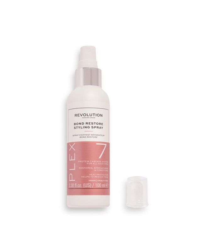 El spray reparador capilar Plex 7 Bond Restore de Revolution Haircare tiene una fórmula ligera que protege del calor y ayuda a reducir el frizz.