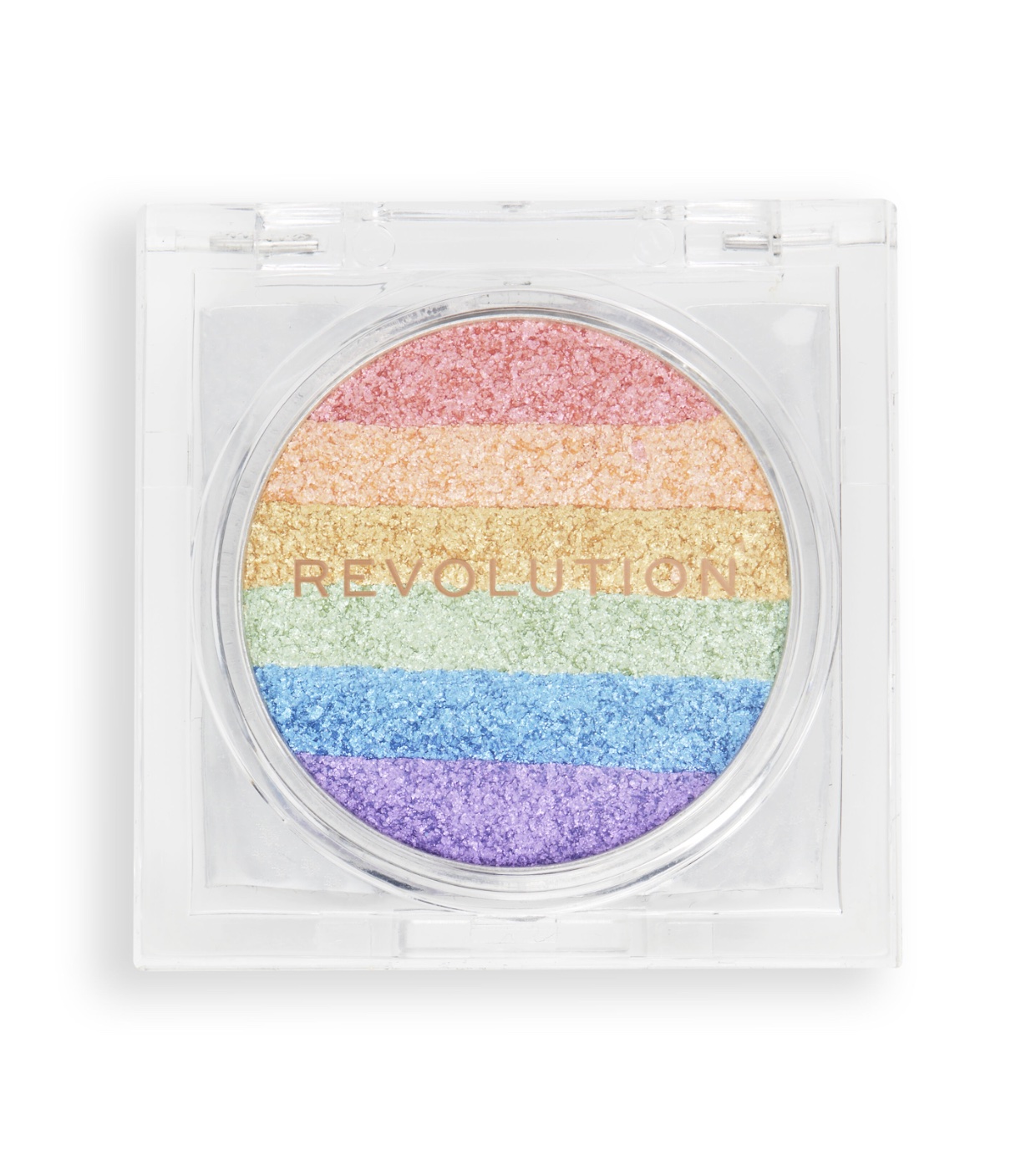 Haz que tu piel brille con orgullo con el iluminador Revolution Rainbow Beam Bright Highlighter: ¡un lujoso polvo sedoso que se funde en la piel como un líquido!