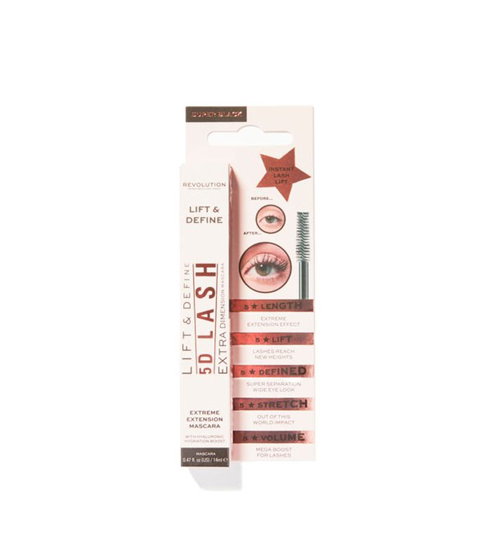 La máscara de pestañas 5D ofrece una fórmula de alta calidad de color negro azabache fabricada en Italia.