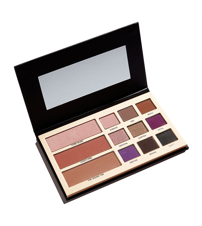 Encontramos 9 sombras de ojos, entre las que hay colores de transición, mates y metalizados, un iluminador, un colorete y un bronceador.