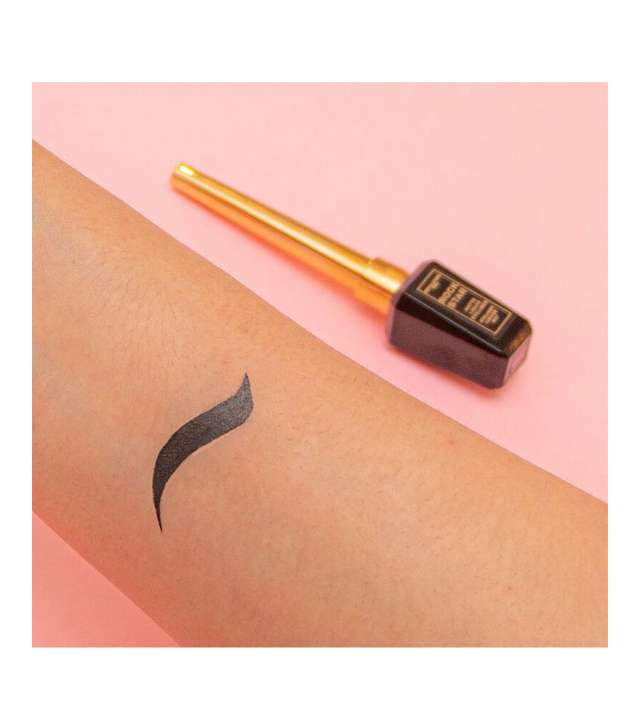 Delineador de ojos líquido negro con acabado mate de secado rápido y resistente al agua.