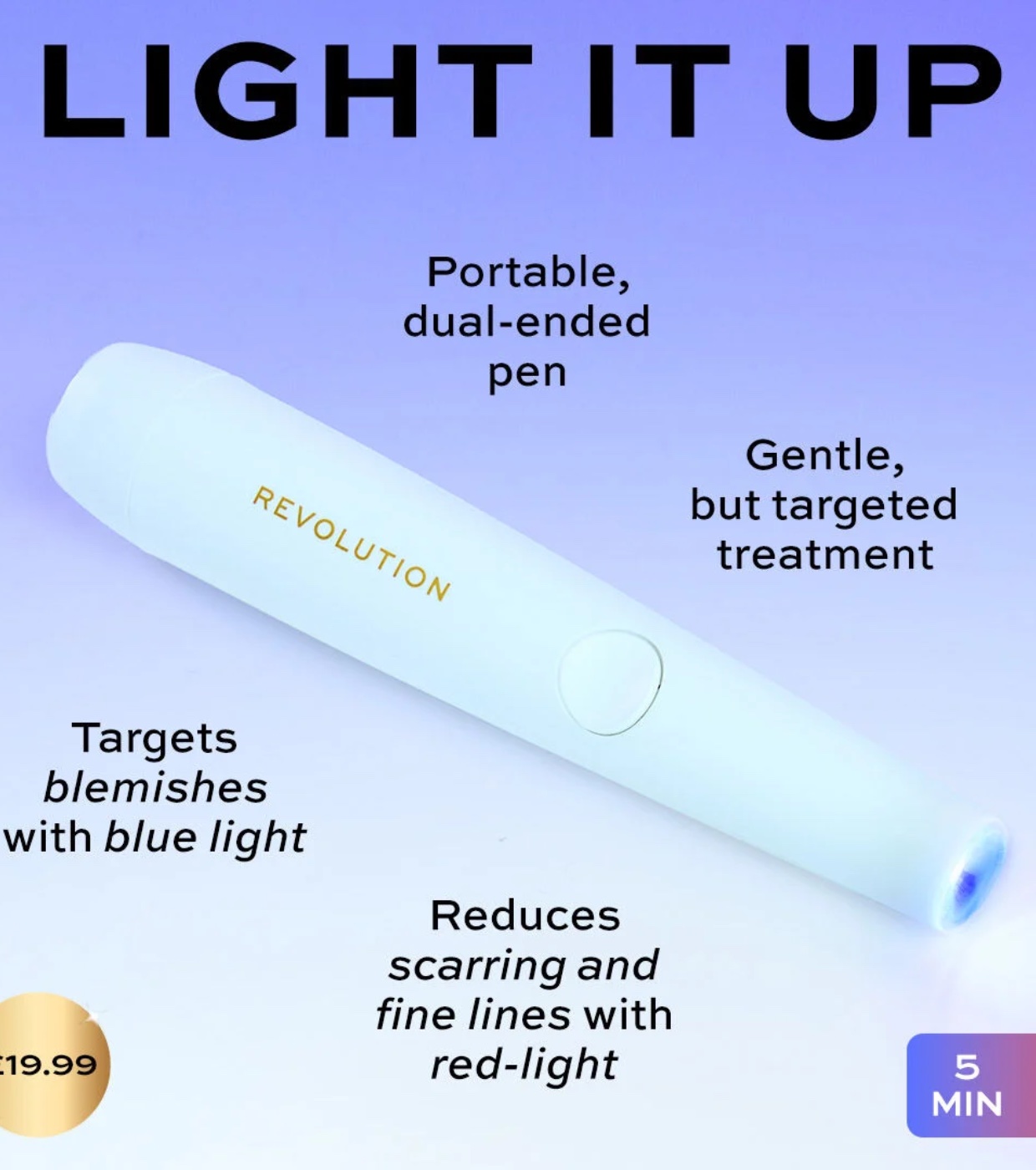 ¡Un ritual rápido de 10 minutos para conseguir resultados de spa en casa! El dispositivo de fototerapia LED Pro Miracle de Revolution Pro es un elegante y portátil dispositivo de terapia de luz con doble extremo, que combina la terapia de luz azul y roja.
