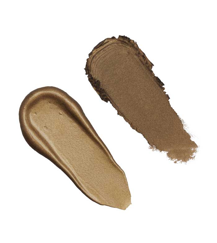 Su fórmula 2 en 1 cuenta con un lápiz cremoso (0.6g) en un extremo y un gel brillante (3.2ml) altamente pigmentado en el otro para un mayor impacto.