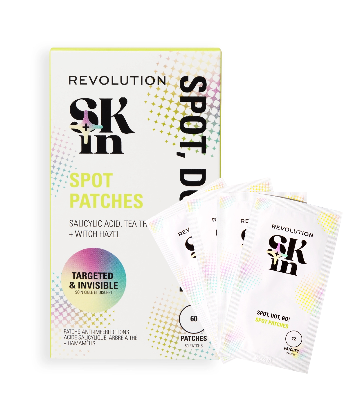 Estos parches para granos Spot, Dot, Go! de Revolution Skin son ultrafinos e invisibles actúan durante la noche o sobre la marcha para reducir visiblemente las rojeces y mejorar el aspecto de la piel por la mañana.
