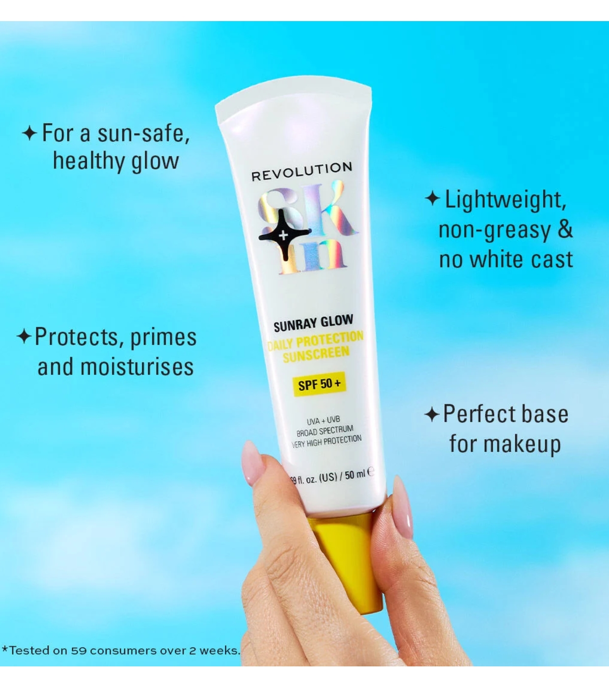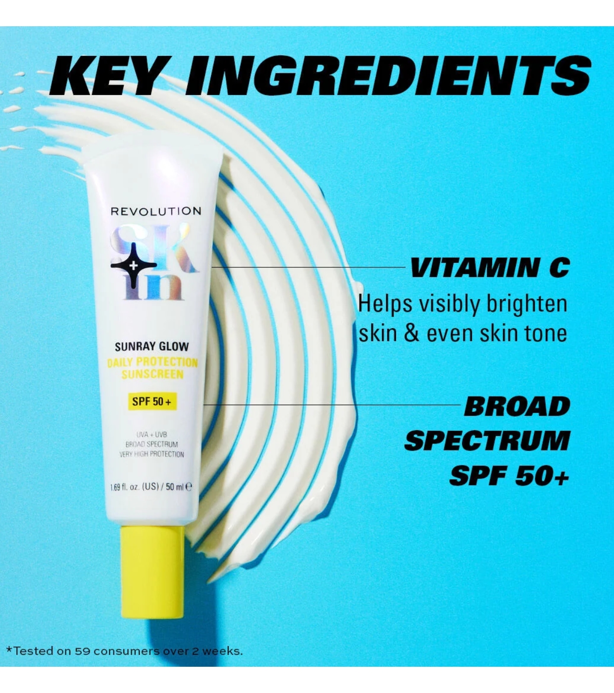 Este protector solar Sunray Glow Daily Blur SPF50+ de Revolution no solo defiende tu piel de los rayos UVA y UVB con SPF 50+, sino que también la deja con un brillo saludable e instantáneo gracias a su fórmula enriquecida con vitamina C.