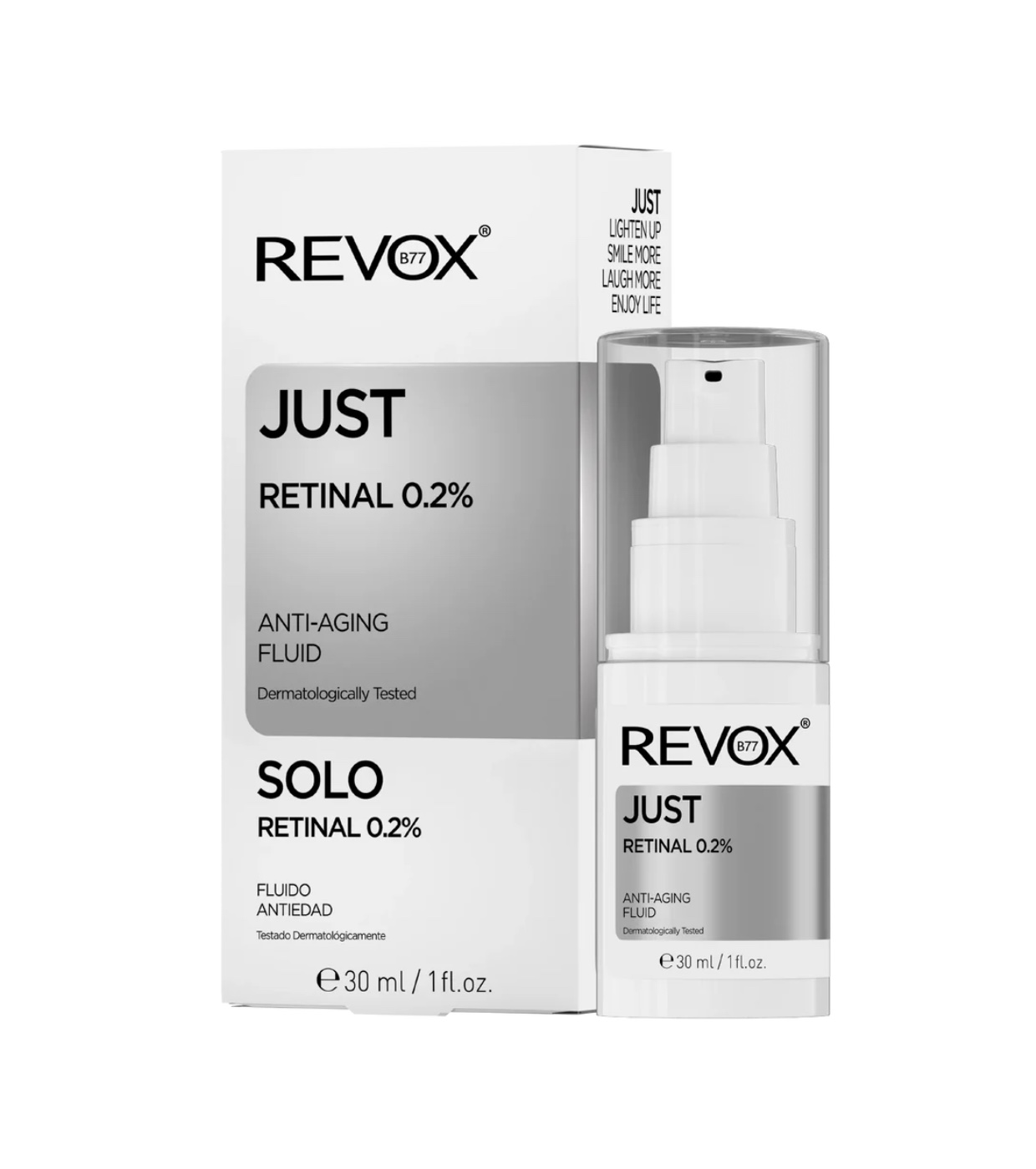 El Fluido antiedad Retinal 0.2% de Revox es una potente formulación retinoide diseñada para combatir los signos prematuros del envejecimiento.