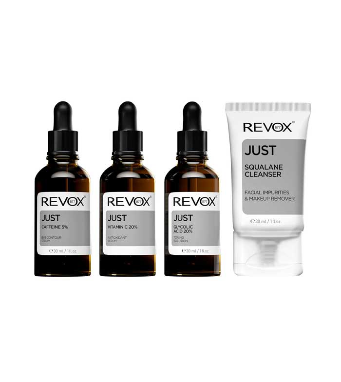 - 1 x Vitamina C 20% Just de Revox (30ml), un suero antioxidante para la cara y el cuello. Los radicales libres pueden romper el colágeno de la piel y permitir la flacidez y la formación de arrugas. La vitamina C es un poderoso ingrediente antienvejecimiento que proporciona a la piel una protección antioxidante contra los radicales libres y los factores ambientales externos. La vitamina C ayuda a reducir la aparición de arrugas y la intensidad de las manchas oscuras, aclara e ilumina el cutis. Este sérum está enriquecido con extracto de aloe vera y extracto de té verde para potenciar sus propiedades antioxidantes. El producto combate la pigmentación, el tono desigual de la piel y los signos de envejecimiento.